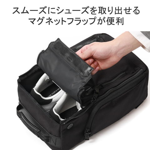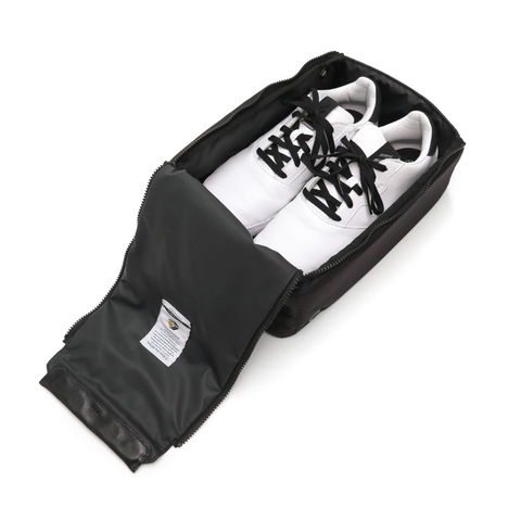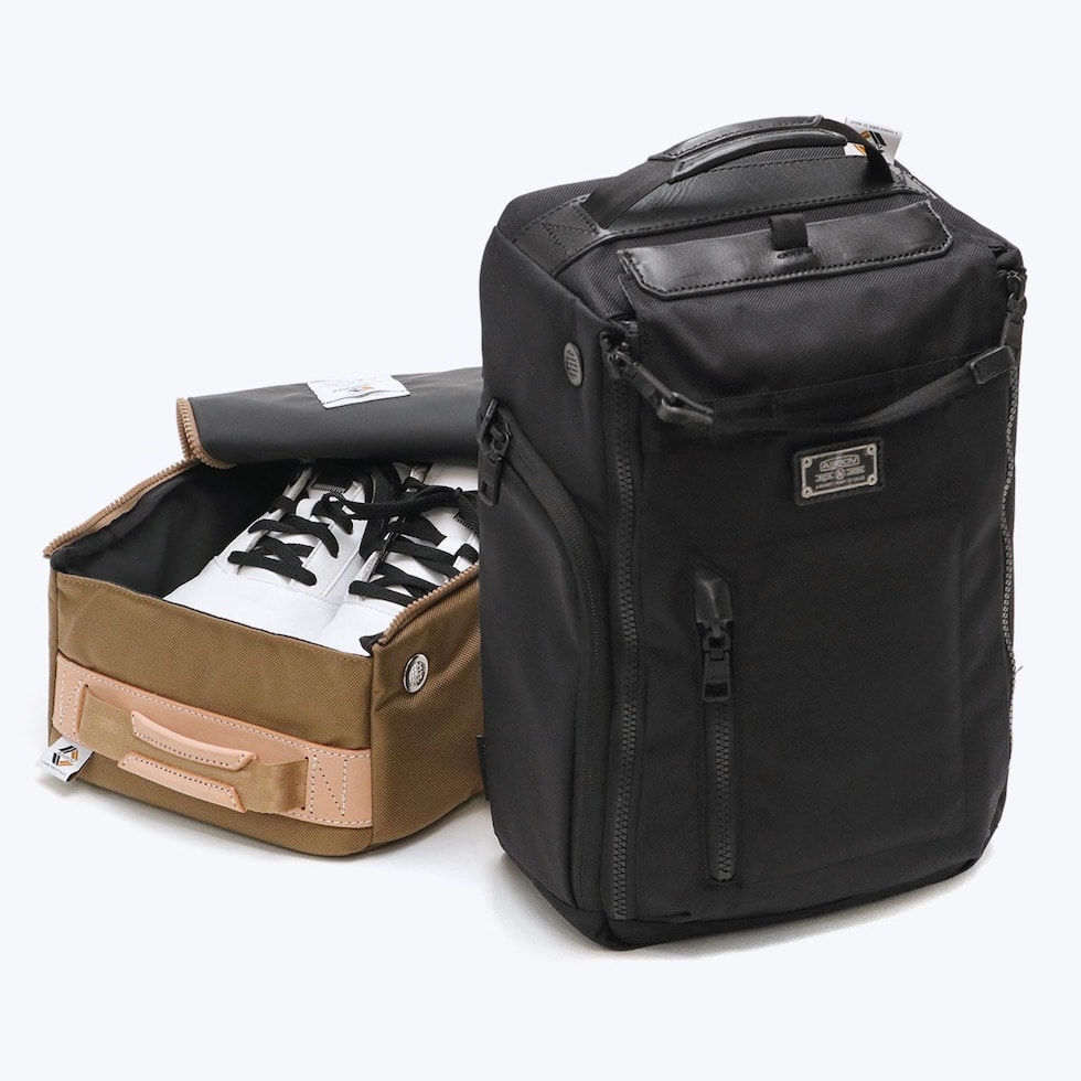 ライトな質感のバリスティックナイロンと上質な革が印象的な『AS2OV GOLF SERIES』のシューズケース。ダブルジップの上部にマグネットフラップを採用し、スムーズな開閉を実現しています。外側2箇所に設けたポケットには、スパイク鋲などの細かなパーツの他、靴べらやソックスなども収納できます。内装にPVC素材を使い、お手入れが簡単なのも嬉しいポイント。シンプルなフォルムとAS2OVらしい素材のコンビで、どんなタイプのシューズにも似合うアイテムに仕上がっています。
