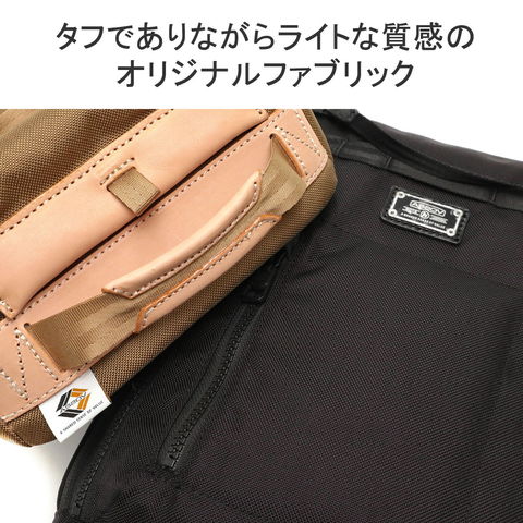 詳細説明 本シリーズに使用する革は、上質で厚みを残した北米産のステアレザーの優良原皮。手間のかかるベジタブルタンニン鞣しにこだわり、仕上げに職人の手作業によるオイルグレージングを施しています。手に触れる度に、革本来の質感や素材そのものが柔らかく変化していく様子を存分に味わっていただけます。本体素材には、タテ・ヨコで規格の違う糸を使用することで程よい光沢を残した深みが特徴的なオリジナルファブリックを採用。上質な革とナイロンのコンビネーションをお楽しみください。