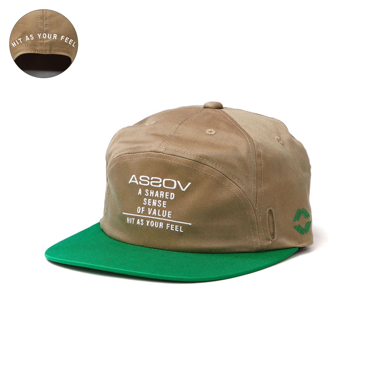 バイカラーの配色がアクセントになった、フラットバイザータイプのゴルフキャップ。フロントパネルに施された刺繍はAS2OV GOLF Seriesオリジナルのデザインとなっており、特別感ある仕上がりに。バックに施された『「HIT AS YOUR FEEL」-感じるままに打つ-』の刺繍もこだわりのポイントです。アジャスターでお好みのサイズに調整できるほか、サングラスを取り付けてセットアップできる便利なデザインで、ゴルフシーンはもちろん、レジャーやアウトドアシーンにもおすすめです。