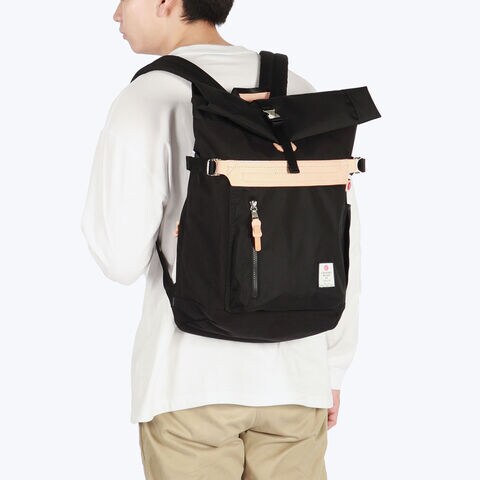 ブランドを代表する「HIGHDENSITY」シリーズが、現代に合わせた機能をプラスしリニューアル。既存のスペックも見直し、質感と利便性を向上させています。こちらは容量抜群のロールトップ型バックパック。シンプルなルックスとレザーパーツからなる上質感が、カジュアルからビジネスシーンまでシーンレス&ユニセックスにマッチするアイテムです。