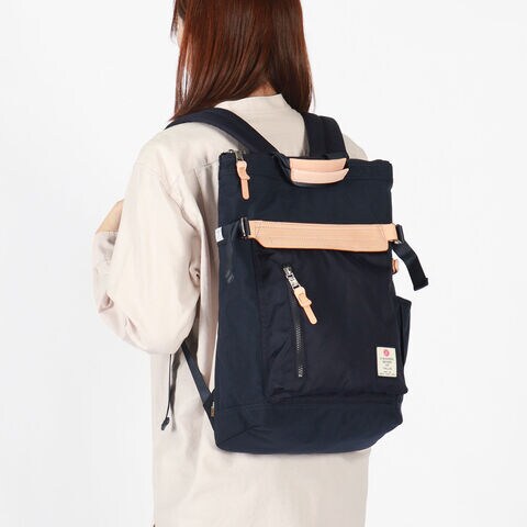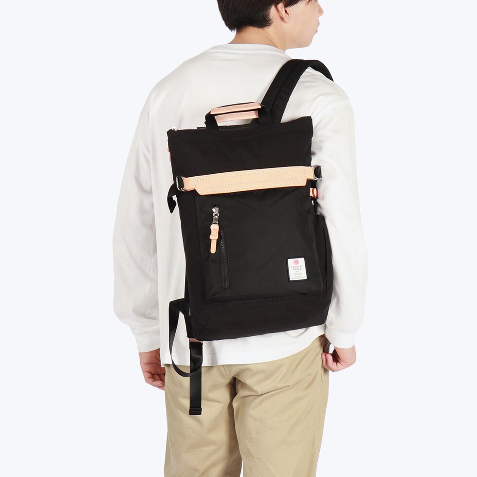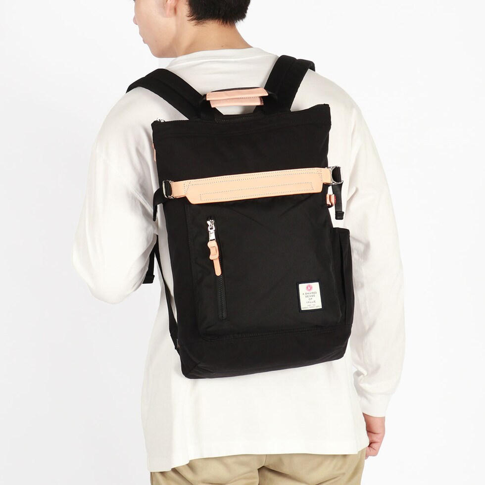 AS2OVの代表シリーズの1つでもある『HIGHDENSITY/ハイデンシティー』が現代のライフスタイルに合わせてリニューアル。既存のポケットやパーツを見直し、質感・使い勝手を向上させています。こちらは軽量、薄マチがポイントの2WAYバックパックで、背負い・手持ちのどちらでもご使用いただけます。レザーのワンポイントが印象的なデザインも魅力です。