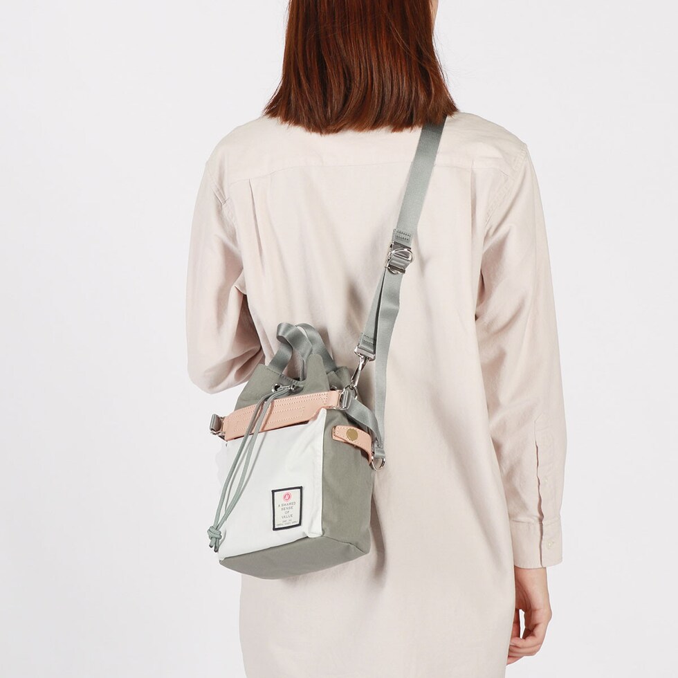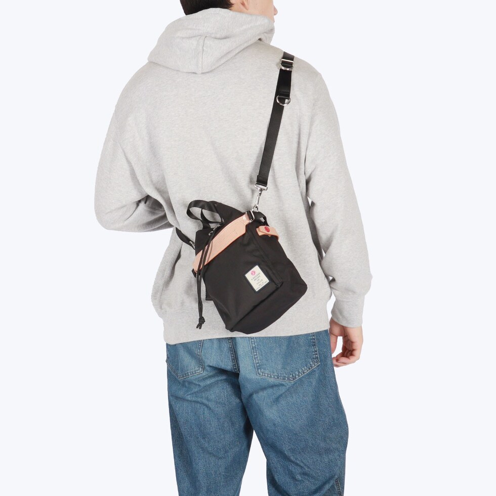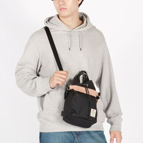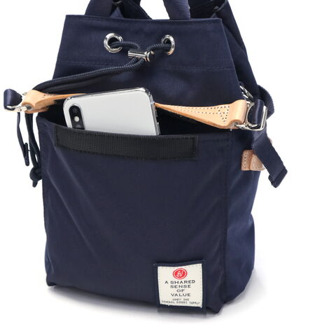 AS2OVの代表シリーズの1つでもある『HIGHDENSITY/ハイデンシティー』が現代のライフスタイルに合わせてリニューアル。既存のポケットやパーツを見直し、質感・使い勝手を向上させています。こちらは手持ち・斜め掛けと2WAYで持ち方がアレンジできる、巾着型ショルダーバッグです。小ぶりな見た目ながらも十分な収納スペースを備えています。さり気ないレザー使いが上品で、タウンユースにもぴったりです。