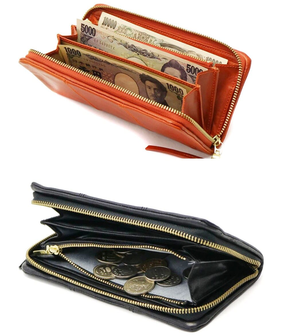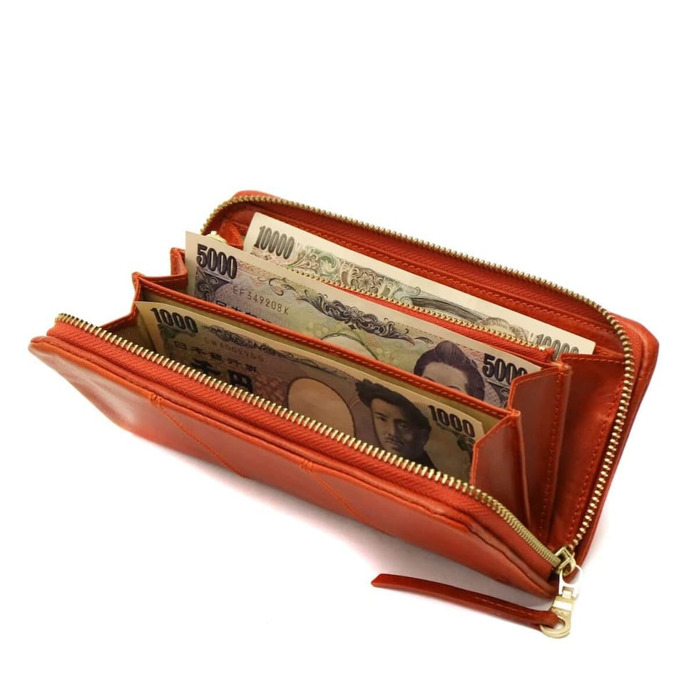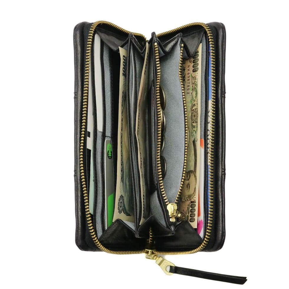 内装は大きく開くササマチ仕様で、3層構造になっています。中に入れたお金やカードの視認性に優れ、出し入れもしやすいのがポイントで会計時をスムーズにサポートしてくれます。