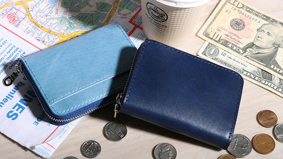 「BAGGY PORT」から誕生した「KOI/コーアイ」。こちらは伝統的な藍染めを革に落とし込み、味わいのある「藍染めレザーシリーズ」のカード&コインケースです。コンパクトなサイズ感で、手に取った際にスマートに映えるルックスとなっています。