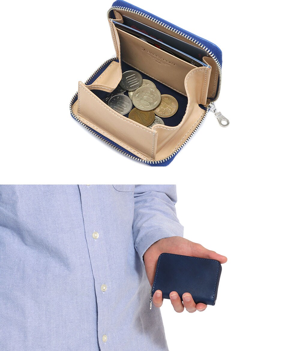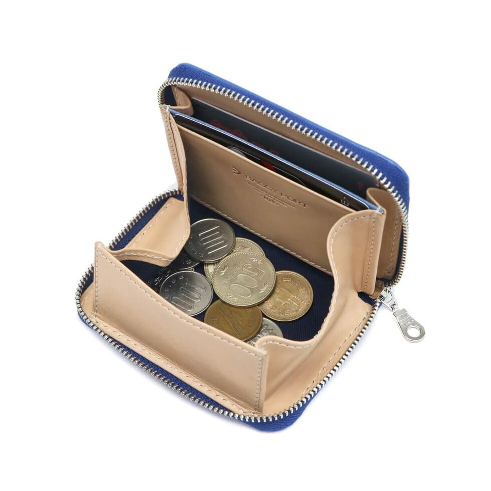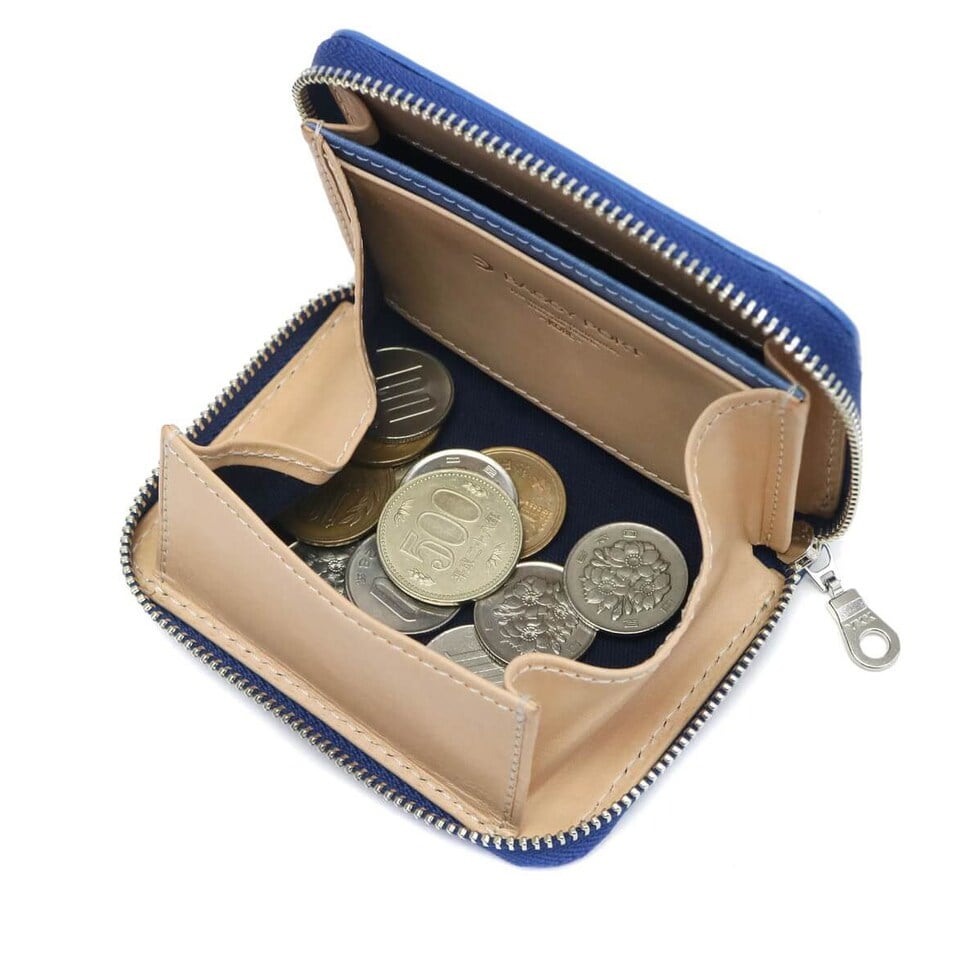 ファスナーを開くと同時に小銭入れとカードポケットが見わたせる視認性の良い便利な作りとなっています。小銭入れスペースは大きく開くので、手が小銭に届きやすくスムーズに使いこなすことが可能。手に取った際にコンパクトで持ちやすいところもポイントとなっています。