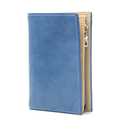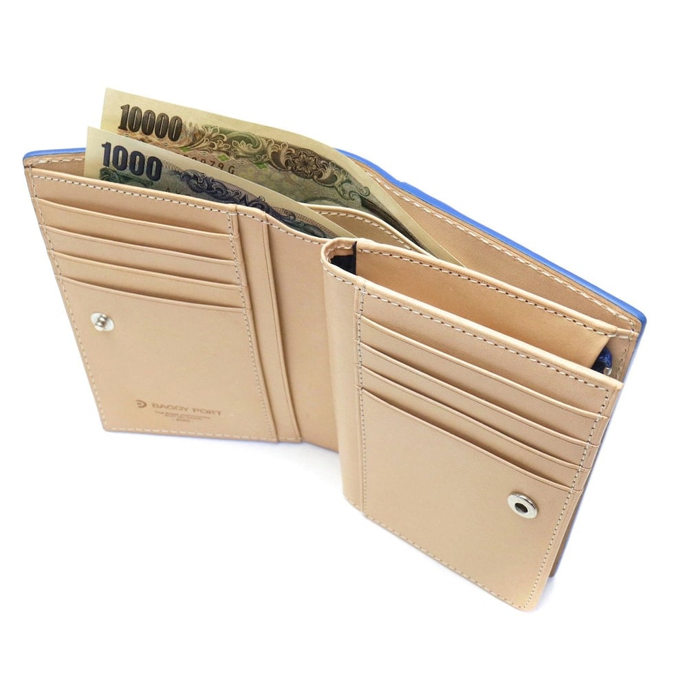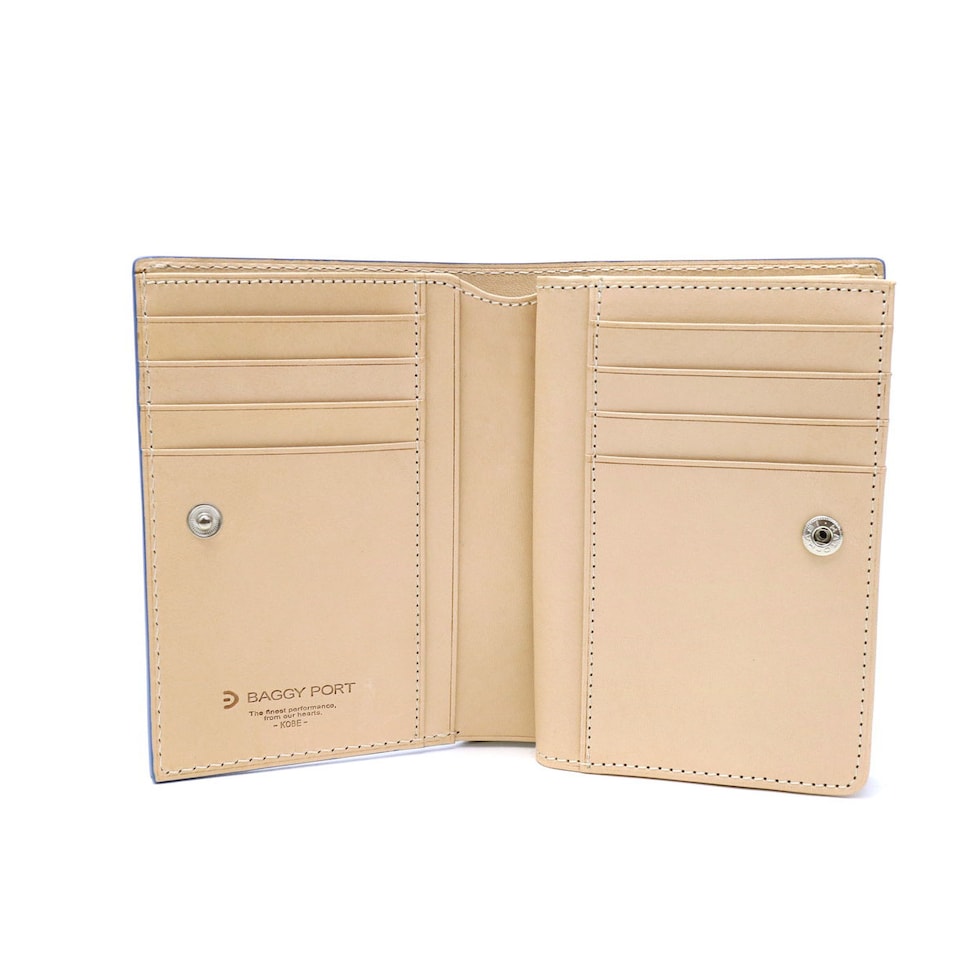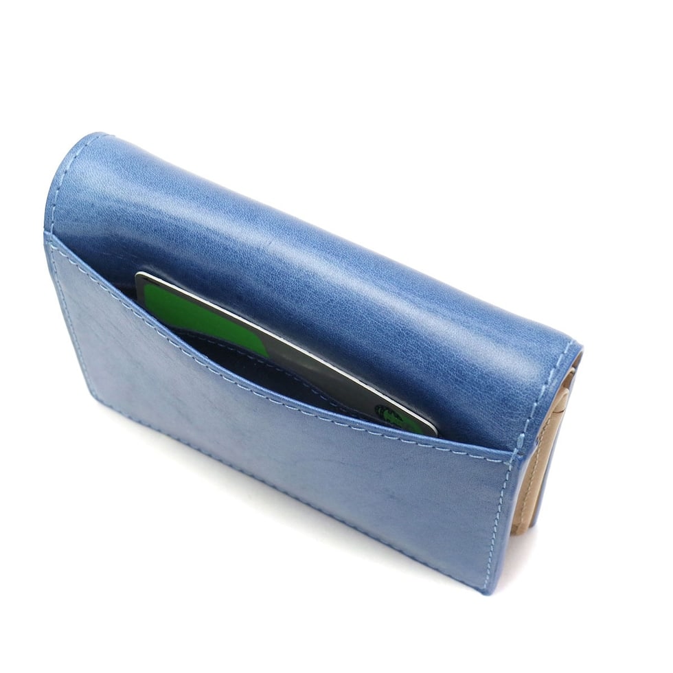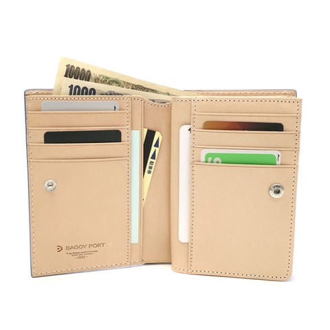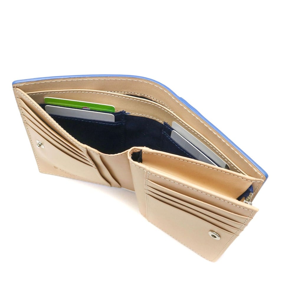 「BAGGY PORT」から誕生した「KOI/コーアイ」。こちらは伝統的な藍染めを革に落とし込み、味わいのある「藍染めレザーシリーズ」の二つ折り財布です。本体はレザーを引き立たせるシンプルなルックスで、年齢問わず幅広くお使いいただける仕上がりになっています。