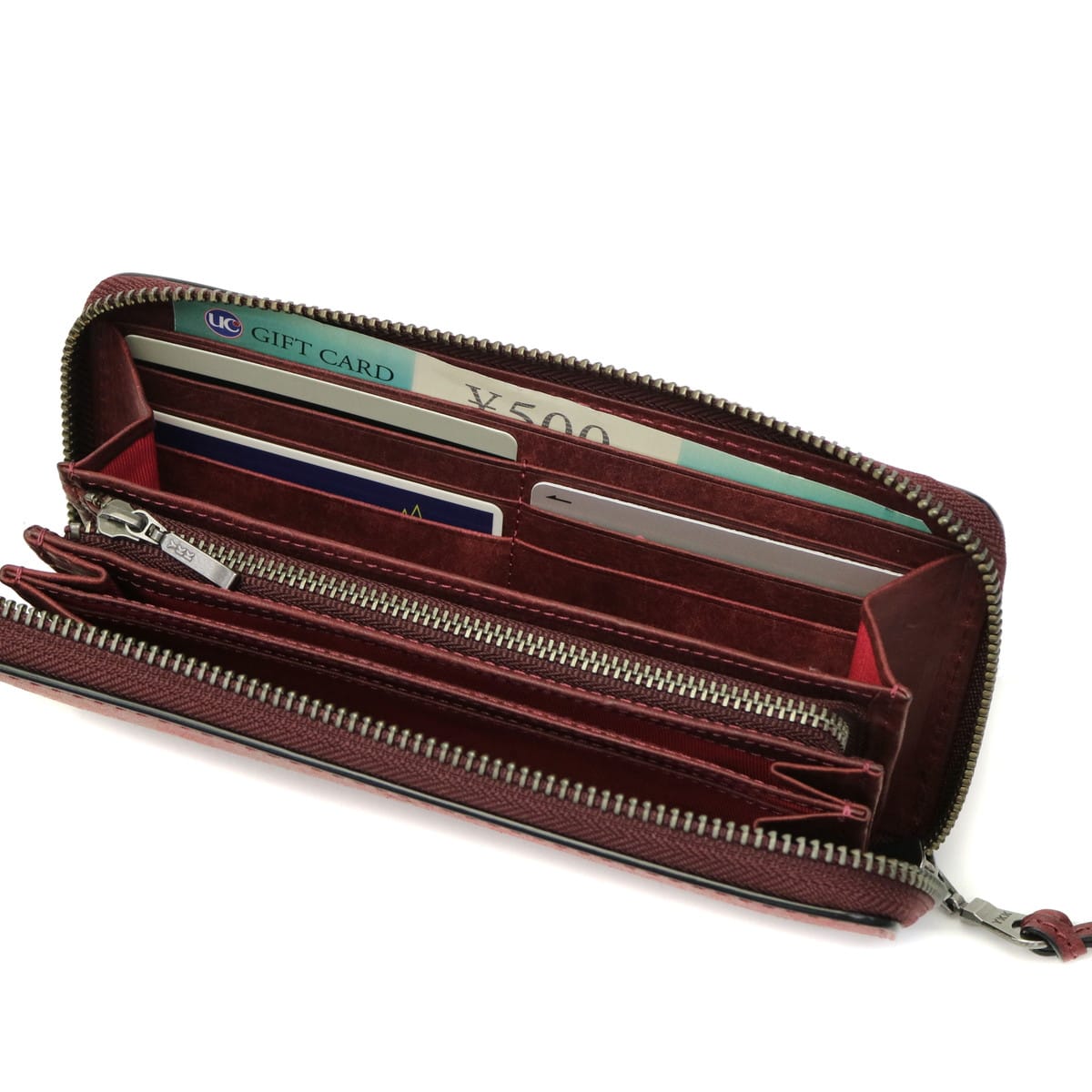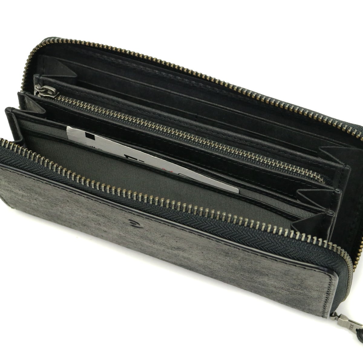 程よいハリ感と独特な温かみのあるレザーでつくられたラウンドファスナー長財布。マチ部分にもレザーを使用しているため、型崩れしにくく、高級感のある仕上がりとなっています。豊富なカラー展開と落ち着いた色味が魅力的です。