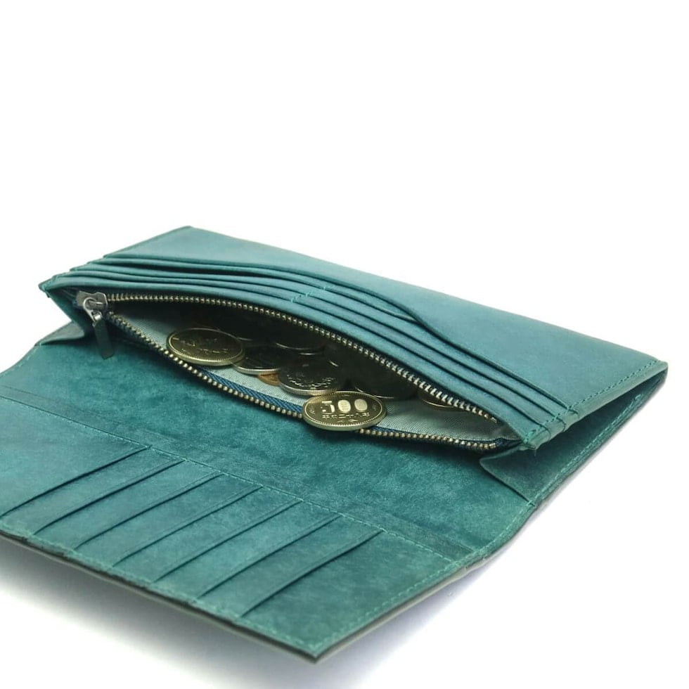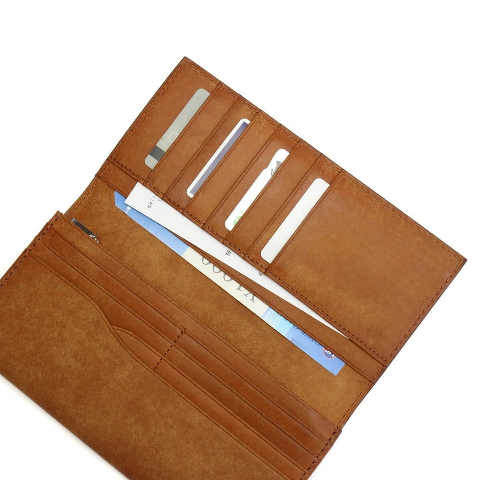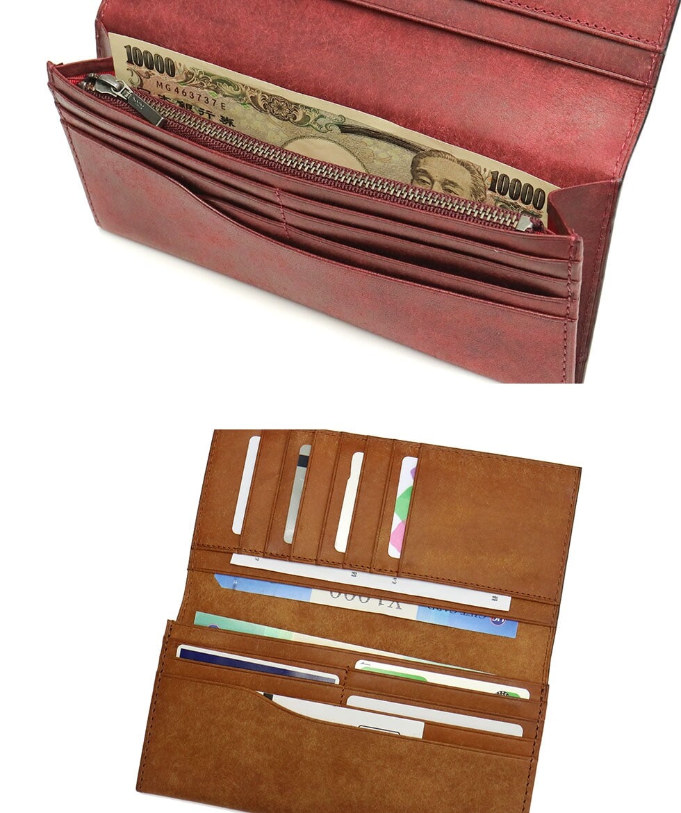 程よいハリ感と独特な温かみのあるレザーでつくられた長財布。収納機能に優れていながら、厚みを感じさせないスマートなフォルムが魅力的です。落ち着いたカラー展開で、高級感のある仕上がりとなっています。