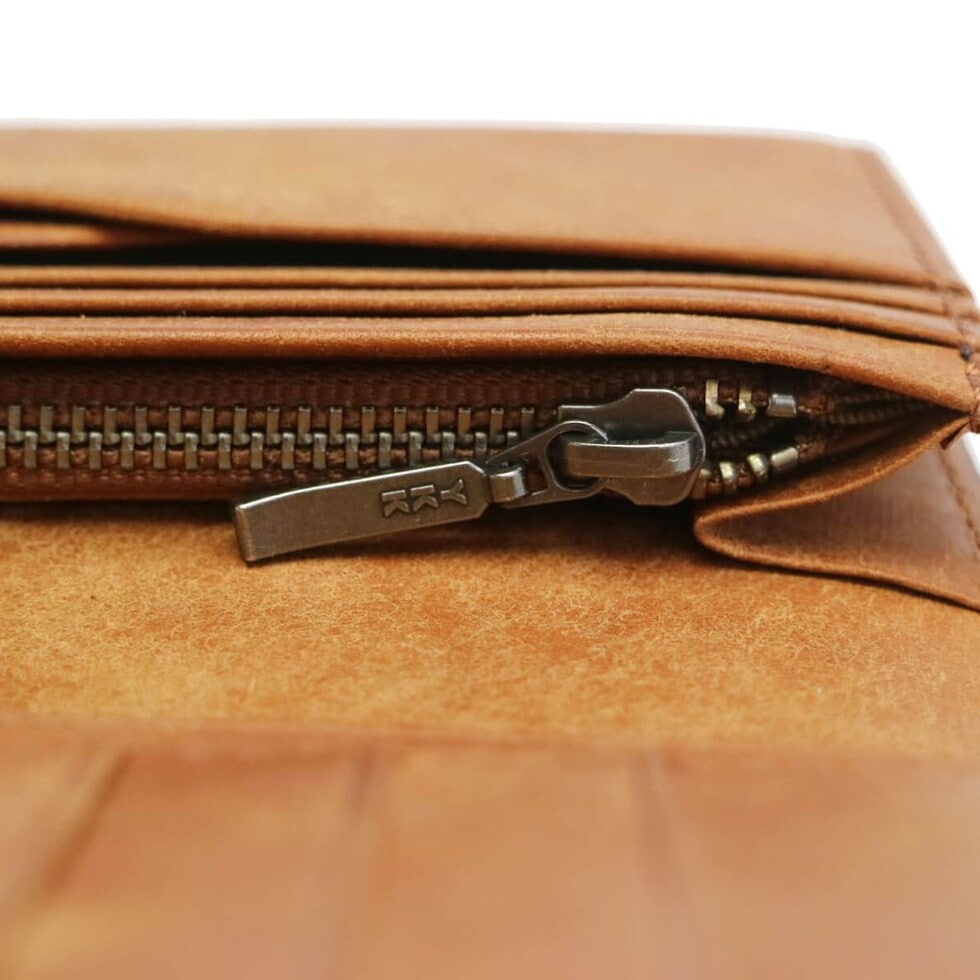 ※使用しているアルミファスナーは素材の性質上、ファスナーの開閉によってアルミの粉が生地を汚す場合がございます。また、はじめはファスナーに引っ掛かりを感じる場合がございますが、使用回数によって軽減されます。ファスナーの特性として、ご了承ください。