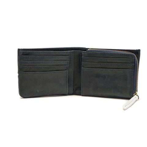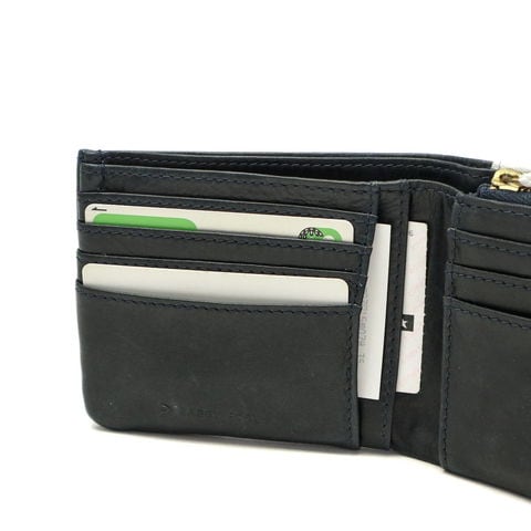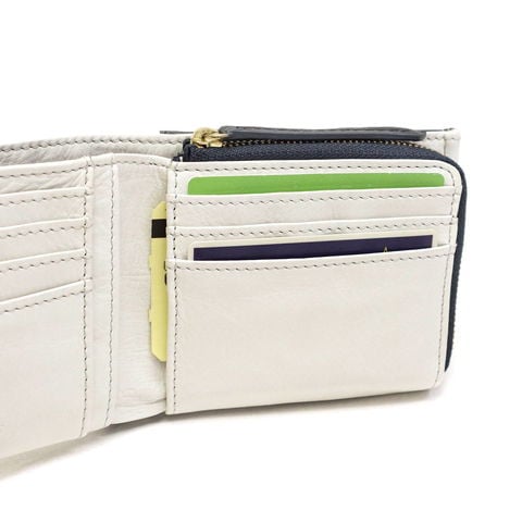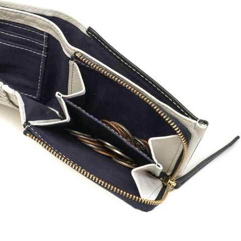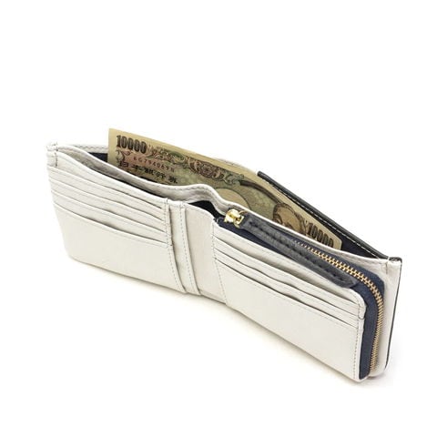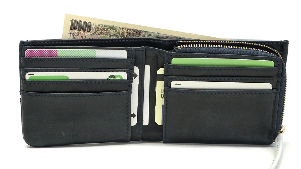収納部は札入れと小銭入れ、13カ所のカードポケットを装備し、さらに3カ所のフリーポケットを設けた充実の設計となっています。L字ファスナー仕様の小銭入れは、中に仕切りが設けられており、種別収納もできる便利なつくりです。