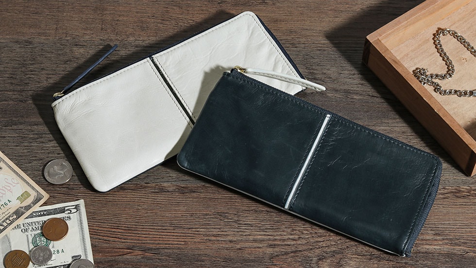 深みのあるレザーの風合いを楽しめる『FULL CHROME/フルクローム』シリーズから、当店でしか手に入らないオリジナルカラーのL字ファスナー長財布が登場。本体正面と背面で異なるカラーとなっており、遊び心あるデザインが魅力です。