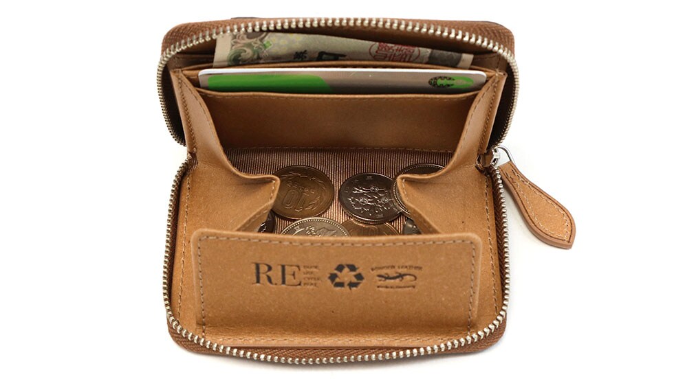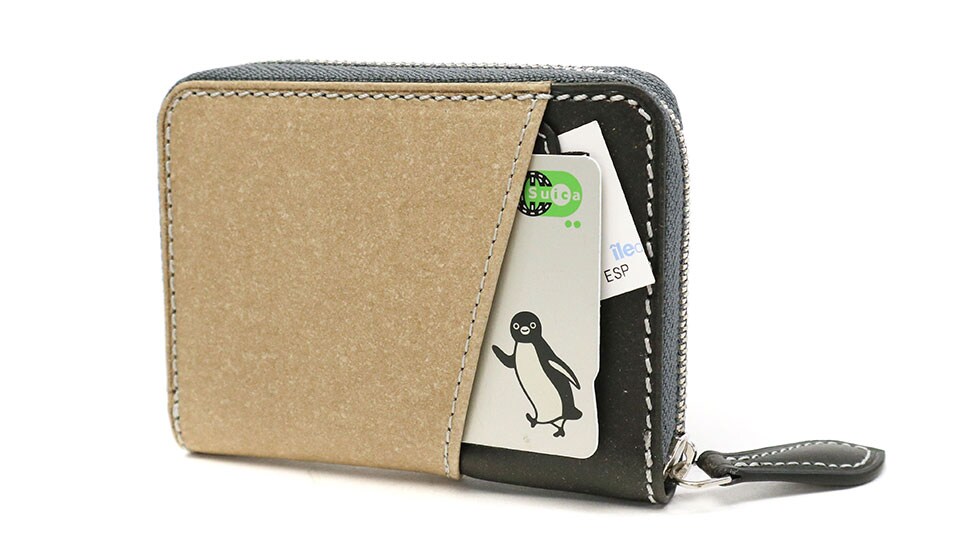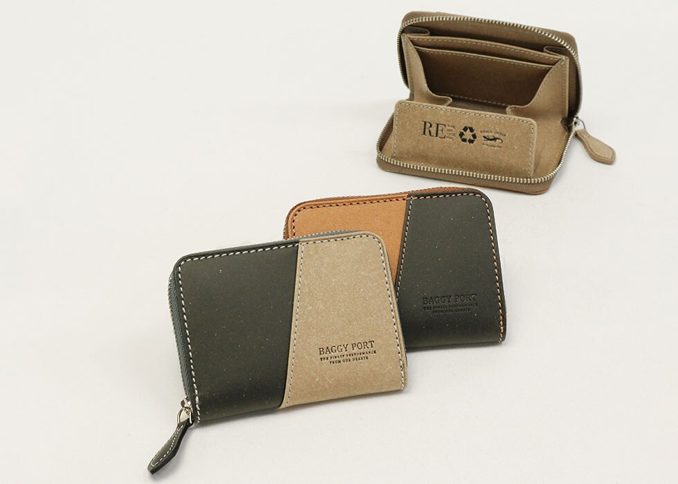 ドイツで100年の歴史を誇る、ドイツサラマンダー社のリサイクルレザーを使用したシリーズのコインケース。表面のコルクのような雰囲気と、程よくカジュアルなバイカラーが特徴です。カラーやデザインにこだわれるのは、リサイクルレザーならでは。エコについて考えつつ、しっかりおしゃれも楽しめます。