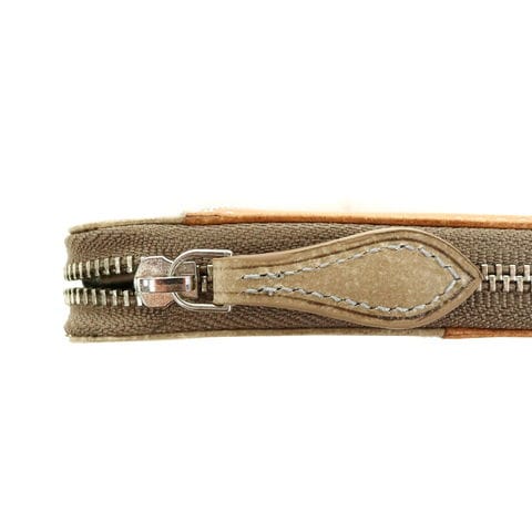 ※使用しているアルミファスナーは素材の性質上、ファスナーの開閉によってアルミの粉が生地を汚す場合がございます。また、はじめはファスナーに引っ掛かりを感じる場合がございますが、使用回数によって軽減されます。ファスナーの特性として、ご了承ください。