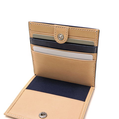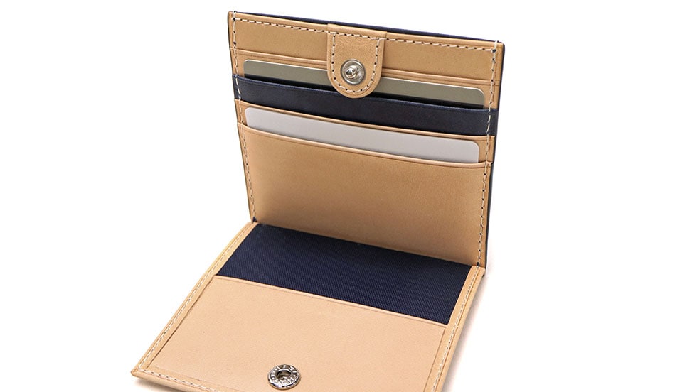 本体はカードと小銭入れを重視したデザインながら、折り畳んだお札もしっかりとしまえる便利なつくり。普段からお札を持ち歩かない方やキャッシュレス派の方にもおすすめで、メイン財布としても十分使える仕上がりです。