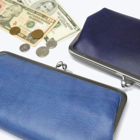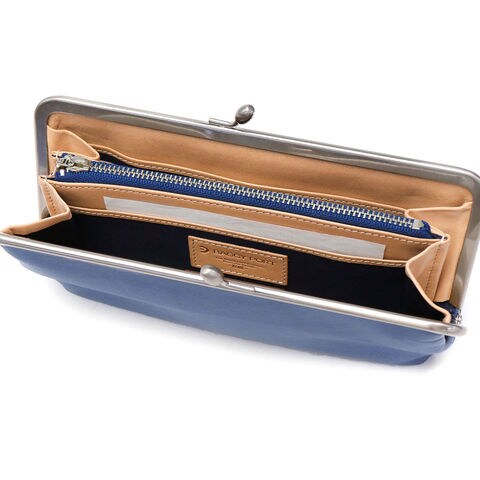 「BAGGY PORT」から誕生した「KOI/コーアイ」。こちらは伝統的な藍染めを革に落とし込み、味わいのある「藍染めレザーシリーズ」のがま口タイプの長財布です。素材感を生かすためシンプルなデザインでありながら、ポケットの数が多く収納力抜群な、機能性の兼ね備えたアイテムです。