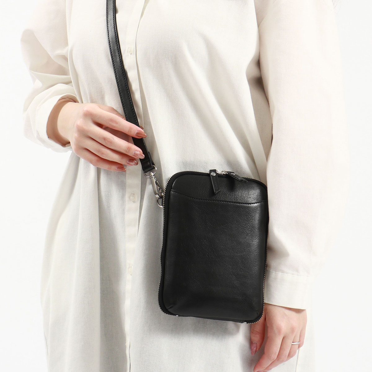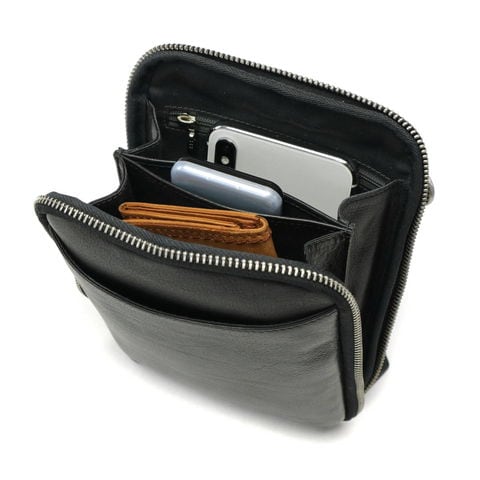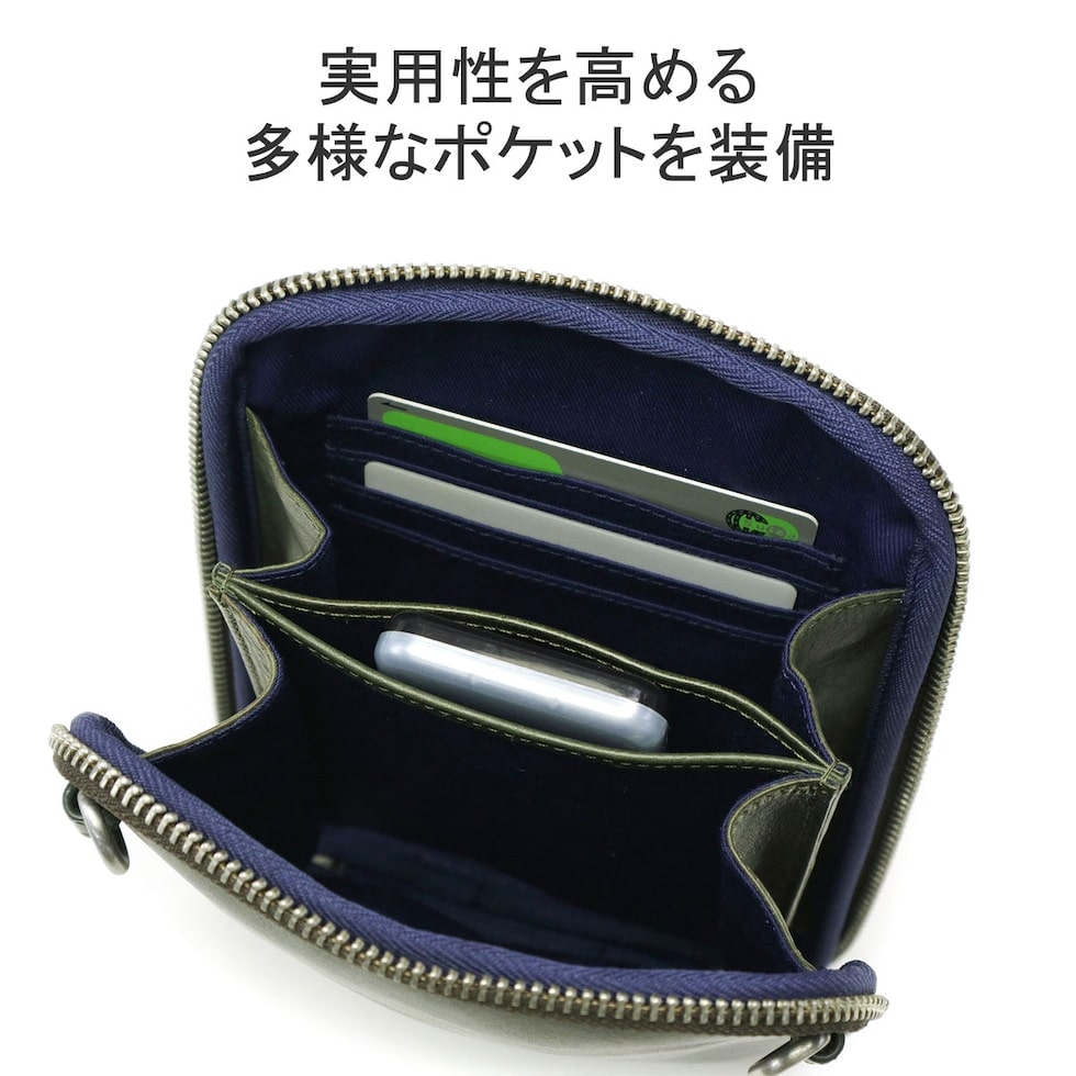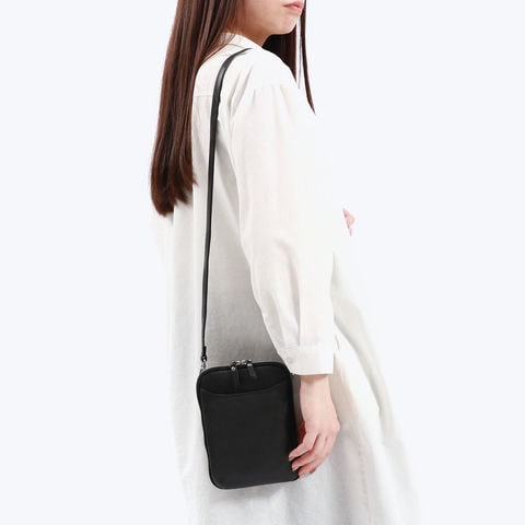 牛革に一つ一つ手作業でバフ加工を施した、艶のある柔らかい質感のバフレザーを使用したスマホショルダー。スマホと一緒にマストなアイテムだけを収納して身軽に外出することができます。カジュアル過ぎない大人なシルエットで、どんなシーンでも活躍してくれる実用的なデザインとなっています。