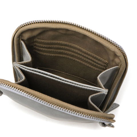 ・使用しているアルミファスナーは素材の性質上、ファスナーの開閉によってアルミの粉が生地を汚す場合がございます。また、はじめはファスナーに引っ掛かりを感じる場合がございますが、使用回数によって軽減されます。ファスナーの特性として、ご了承ください。