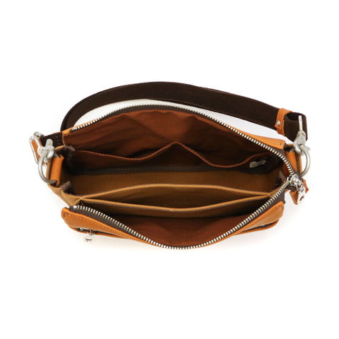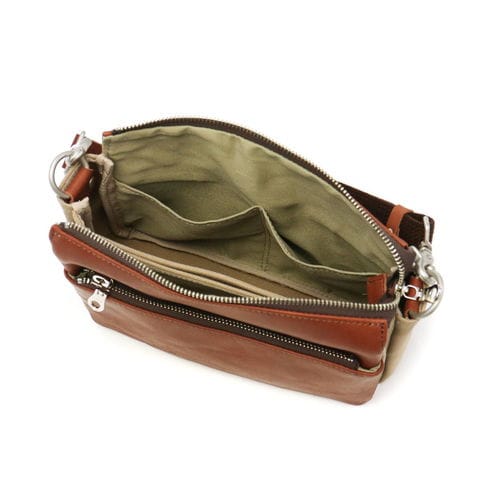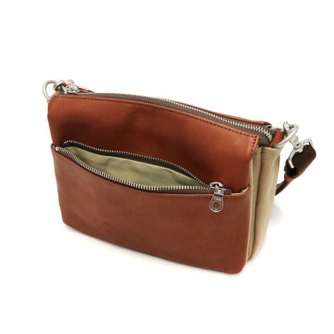 強く、しなやかな牛革を使用したショルダーバッグです。手触りとソフト感、強さとしなやかさが求められる『野球グローブ』に使われる牛革を採用。使い込むほどにツヤが増し、レザーならではの経年変化をお楽しみいただけます。また、コンパクトなデザインながら、内側に仕切りとなるポケットを設けることで、アイテムの仕分けもスムーズに。コーディネートを選ばない、素材を生かしたシンプルなデザインが魅力的なアイテムとなっています。
