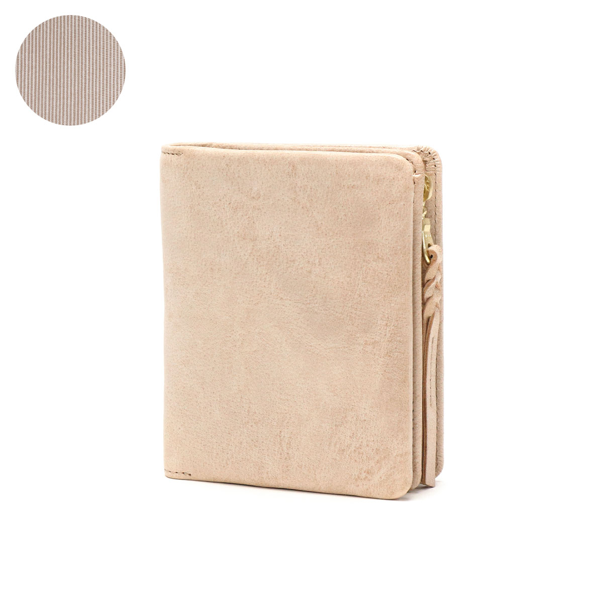 イタリア・トスカーナ州の「TEMPESTI社」が生み出した『FOG Leather』の二つ折り財布。スムースな表面に白っぽいワックス仕上げが施され、使い込むことで自然なツヤが現れます。朝もやのような淡い色合いが特徴で、箔押しロゴがさりげないアクセントに。14枚のカードが収納可能で、使い勝手も抜群です。