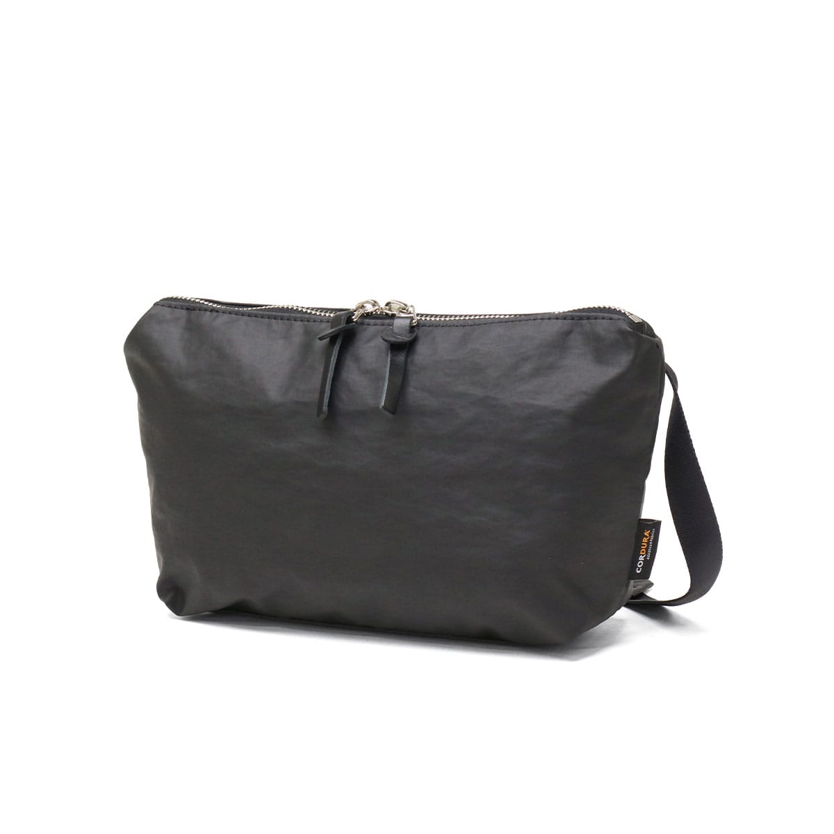 特殊ウレタンコーティングを施したコーデュラナイロンを使用した、機能性に優れた舟形ミニショルダーバッグです。軽量で高い耐久性に加え、防水・防汚性、シワ感のある独特の風合いも魅力。A5対応の収納力や、肩の負担を軽減するパッド付きストラップ、便利な背面テープなど、使いやすさにもこだわったユニセックスデザインです。