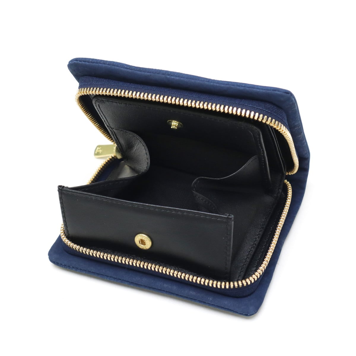 藍染ヌバックレザーを贅沢に使用した、手のひらサイズのミニウォレット。深く美しい藍色と、しっとりと手に馴染むやわらかな質感が魅力です。使い込むほどに色艶が深まり、あなただけの表情へと育ちます。本体は、長財布に劣らない収納力と、お札・小銭の出し入れがスムーズな設計がポイント。毎日をもっとスマートにする相棒として活躍してくれるアイテムです。