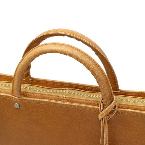 本体は、着脱可能なショルダーストラップが付属。シーンや荷物量に応じて、斜め掛けとしてもお使い頂ける便利な2WAY仕様となっています。かっちりしすぎないアンティークな素材感で、軽い上に丈夫なのもポイントです。