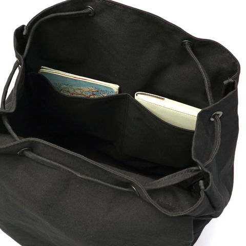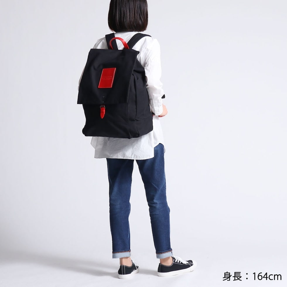耐久性に優れた高密度帆布にヌメ革のアクセントが効いた、大容量のかぶせリュック。使い込むほど味わいが増し、しなやかでナチュラルな雰囲気で男女問わずお使いいただけるアイテムです。巾着仕様で大きく開くメインルームはB4サイズに対応しており、かさばる荷物もたっぷりと収納が可能。サイドにはメインに直接アクセルできるジップ収納口を設けており、スムーズに出し入れできる便利な設計も魅力のひとつとなっています。