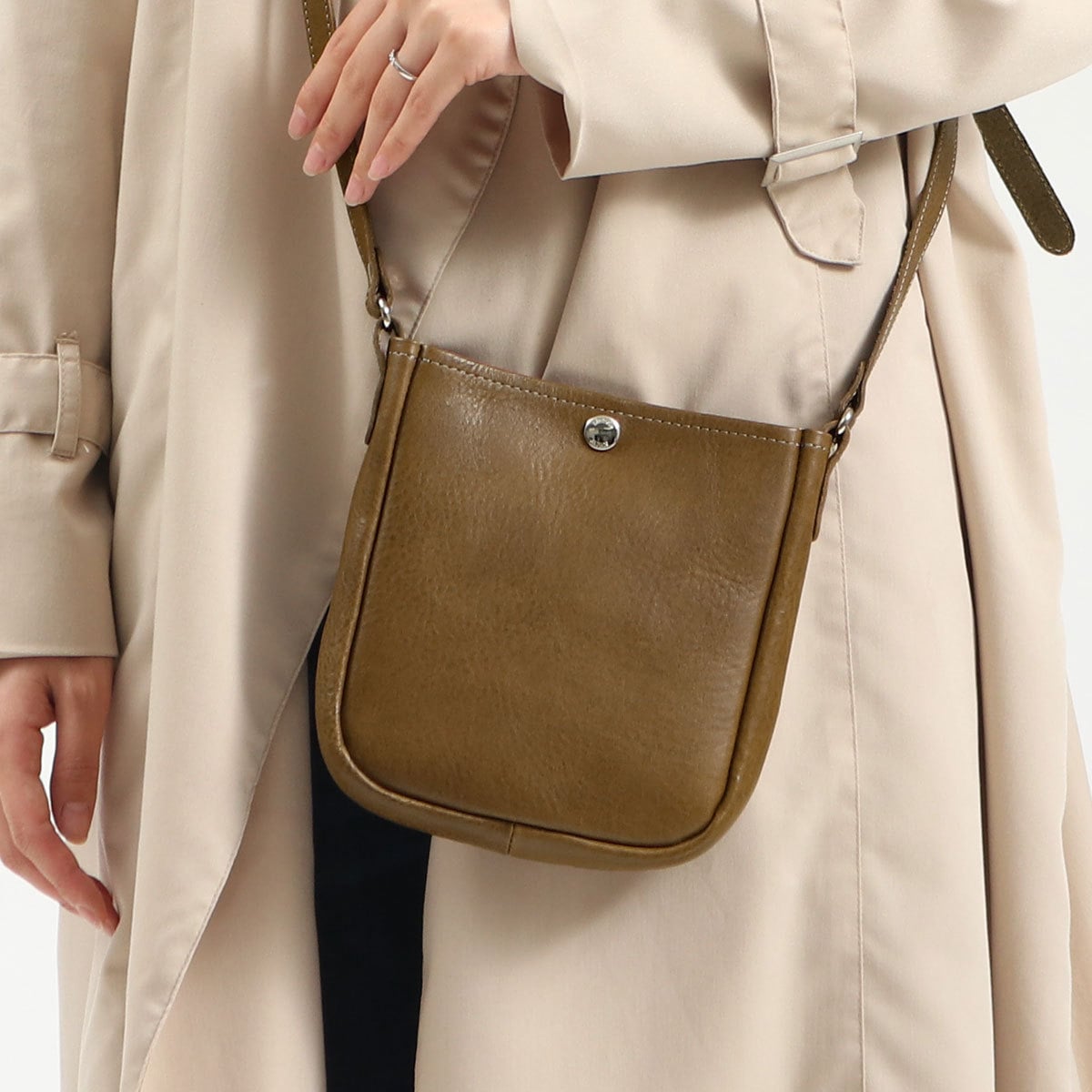 表情豊かな「NUME SHRINK LEATHER」で仕立てたショルダーバッグ。小ぶりなサイズ感と、すっきりとしたスクエアフォルムで性別問わずおすすめです。シンプルなアイテムですが、艶のある表情が存在感を放ち、スタイリングのポイントとしても取り入れやすい仕上がりになっています。