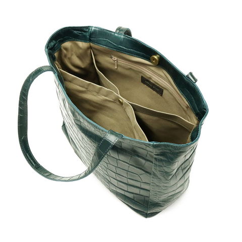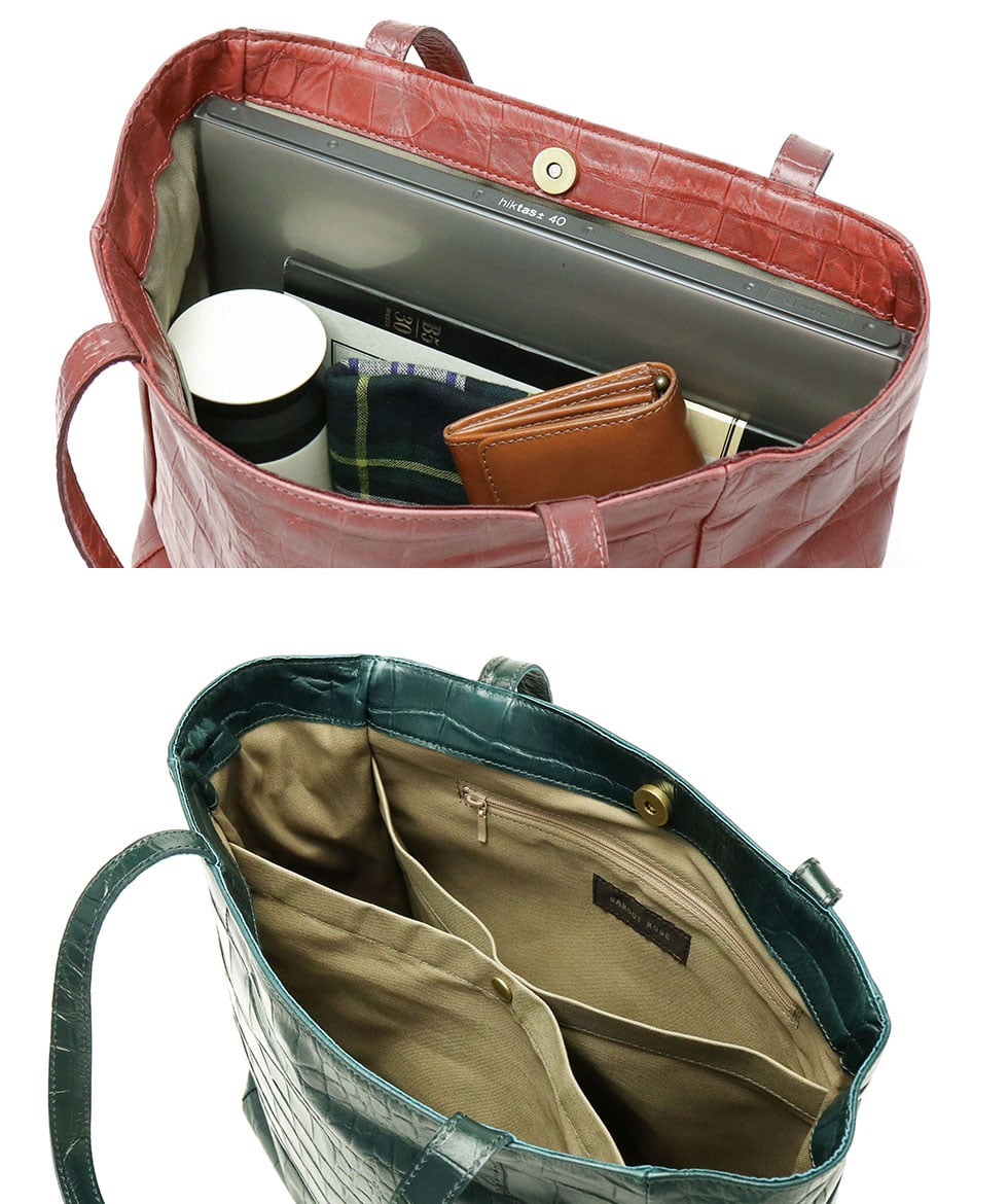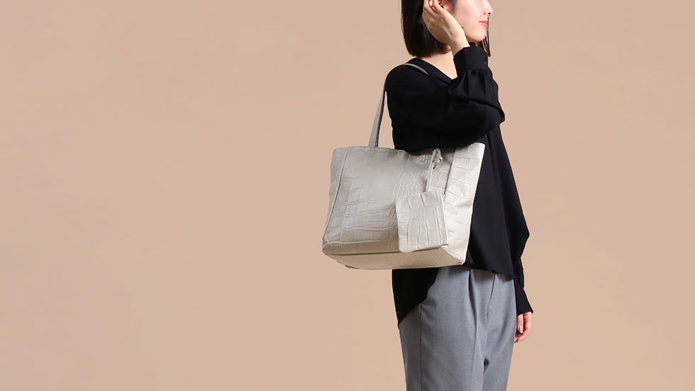 柔らかで上質な牛革に、クロコの型押しで上品さを表現した「ジェントルクロコ」シリーズのトートバッグです。シーンやスタイルに合わせて何色も揃えたくなる豊富なカラーバリエーションと、小物がしまえるポーチ付きのデザインがポイント。A4サイズ対応なので、通勤バッグとしてもお使いいただけます。