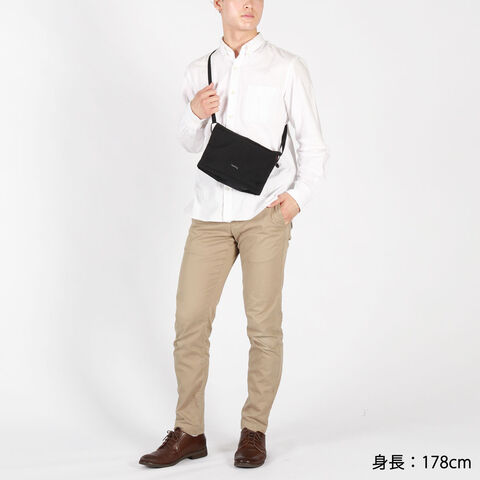 他素材の1/3の軽さを実現するリップストップ生地を採用した『Lite』コレクションのサコッシュです。軽量でコンパクトなサイズ感ながら、収納力は抜群。荷物を整理整頓できるポケットやキーフックなどを配置し、それでいてスマートな印象を与えるミニマルなデザインに仕上げています。