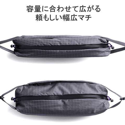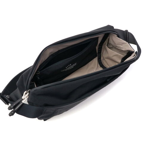 他素材の1/3の軽さを実現するリップストップ生地を採用した『Lite』コレクションのボディバッグです。メインルームは、両側から開閉できる画期的なファスナーで、ワイドな開口を実現。身軽な外出に最適なA5サイズでありながら、横向きの500mlペットボトルを入れてもゆとりのある容量に仕上がっています。