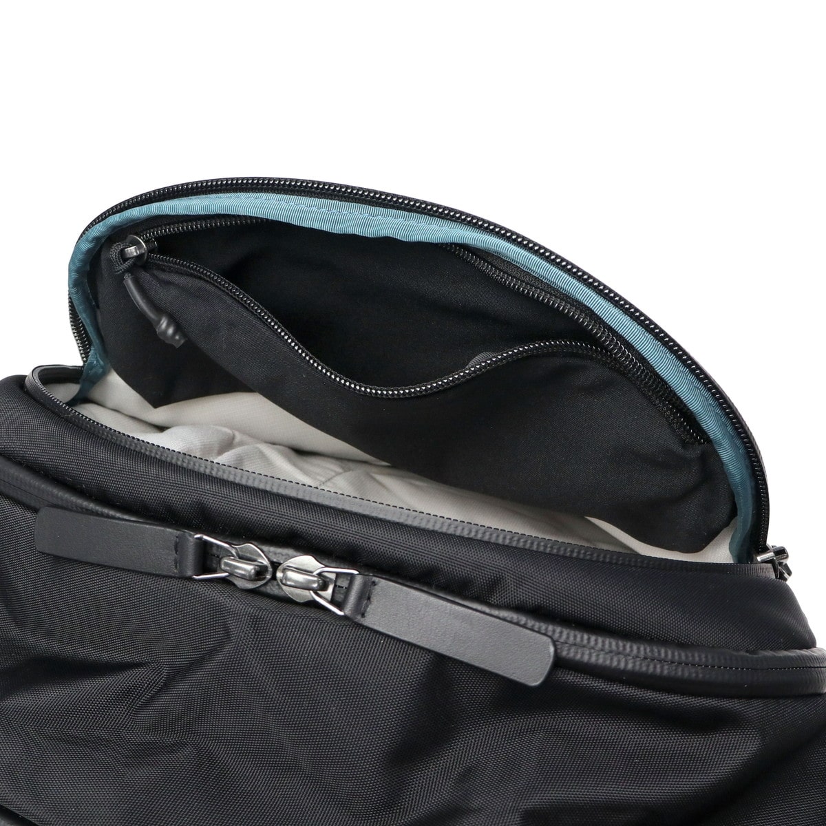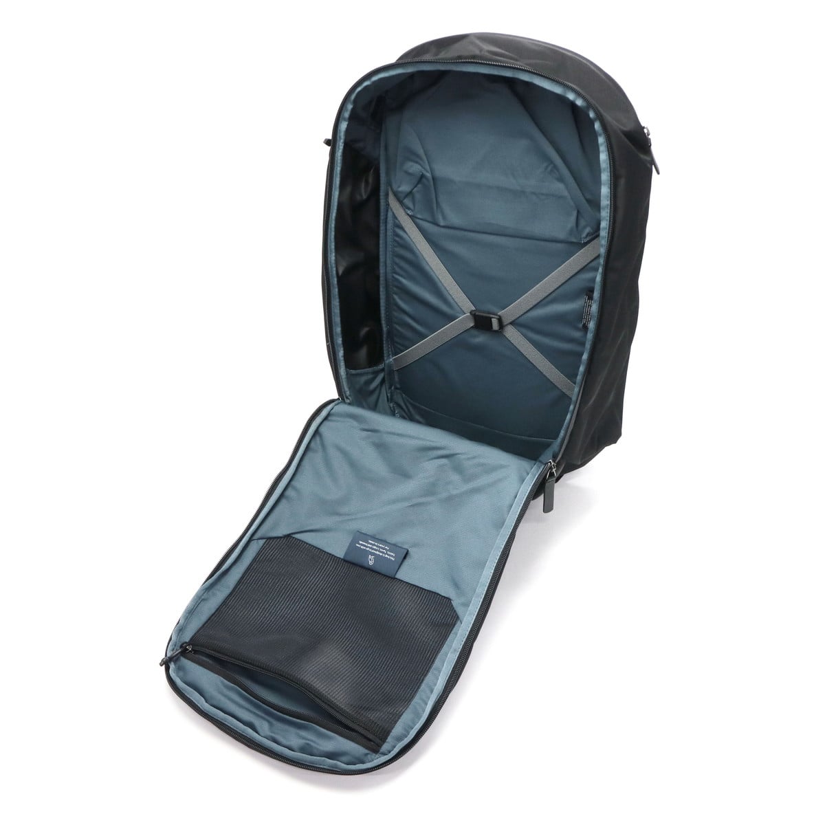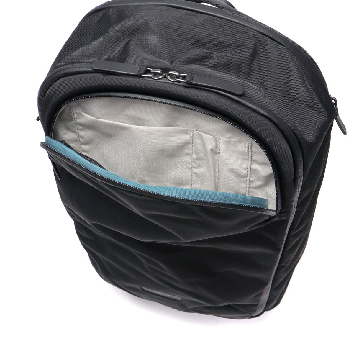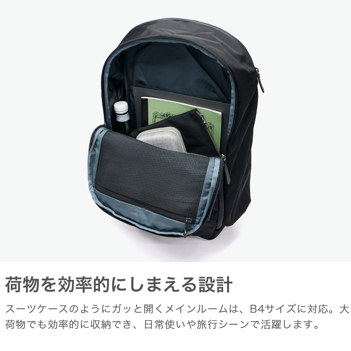 洗練されたフォルムに、驚きの収納力を備えたビジネスリュックです。容量は大きめの約28L。B4サイズが収まるメインルームは、ファスナーが端から端まで開くことで荷物が効率的に収納できるつくりに。高強度なナイロン素材を使用し、毎日のタフな持ち運びにもスマートに対応します。
