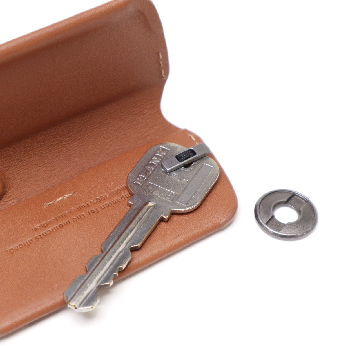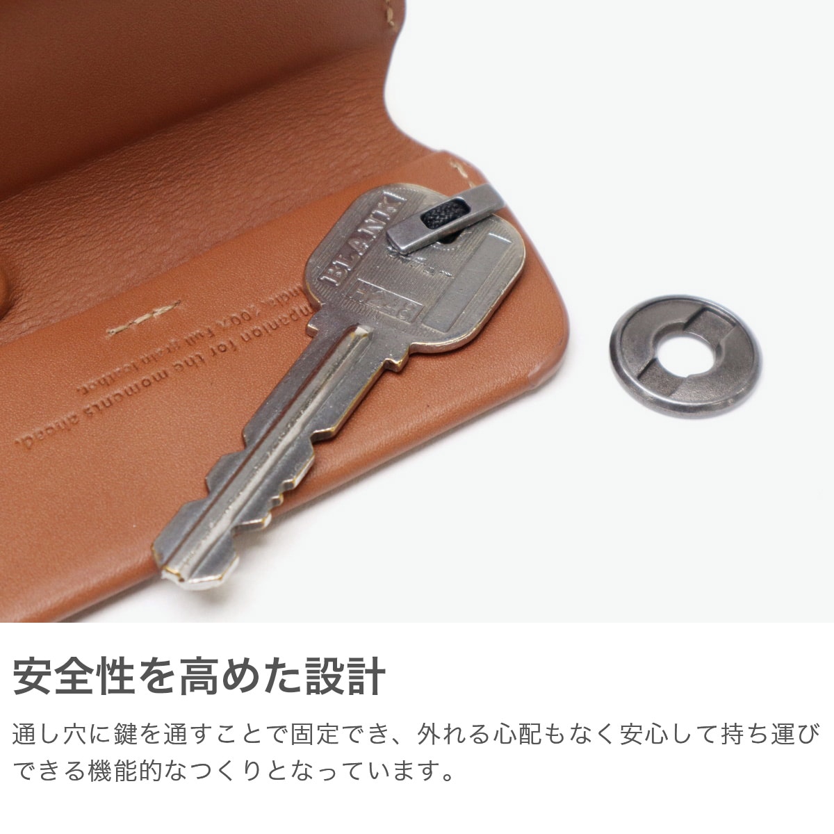 スリムなデザインと本革の上質感が魅力のキーケース。マグネット式開閉で、鍵をすっきり収納でき、ポケットの膨らみを抑えます。Dリング付きで車の鍵も装着可能。耐久性に優れたメタルアイレット採用しています。スマートな鍵管理を叶える、スタイリッシュなキーケースです。