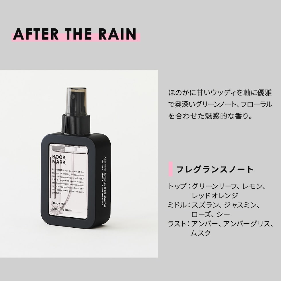 植物由来成分が肌を整え、潤いと豊かな香りを与えてくれるボディミスト。4種類の上質な香りの中から、お好みの香りをお選びいただけます。男女問わず使いやすいスタイリッシュなデザインで、大切な方へのプレゼントとしてもオススメのアイテムです。