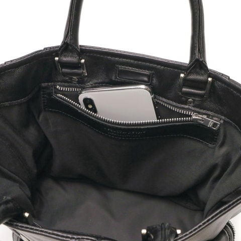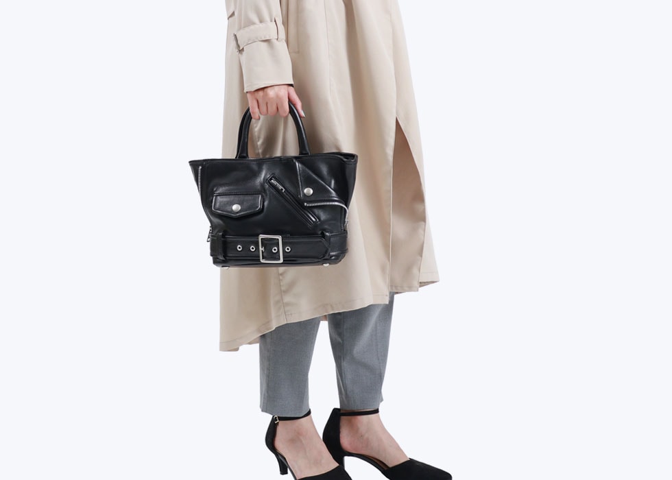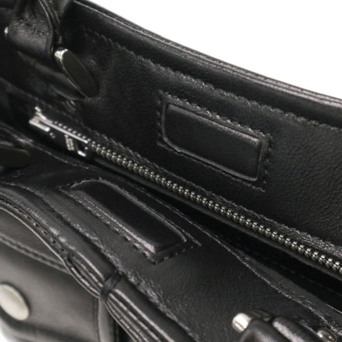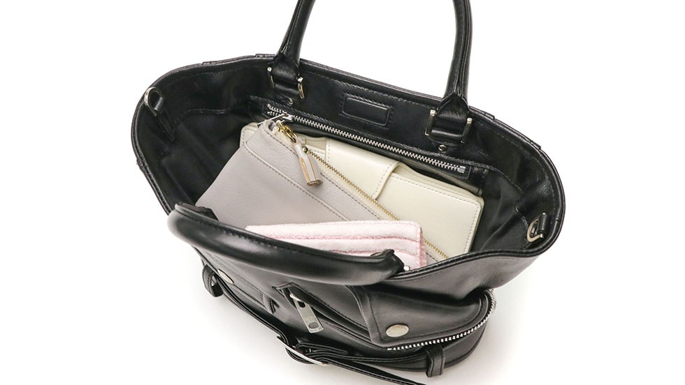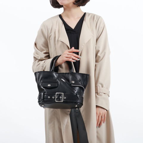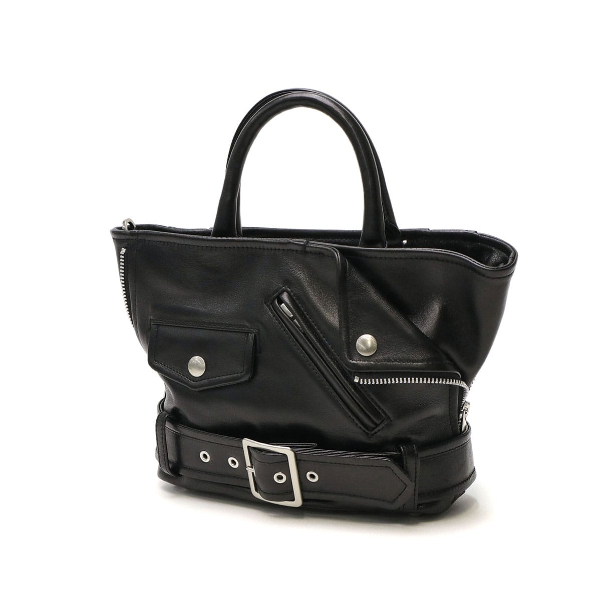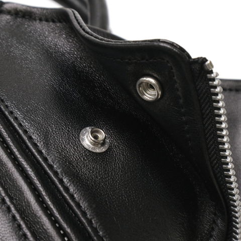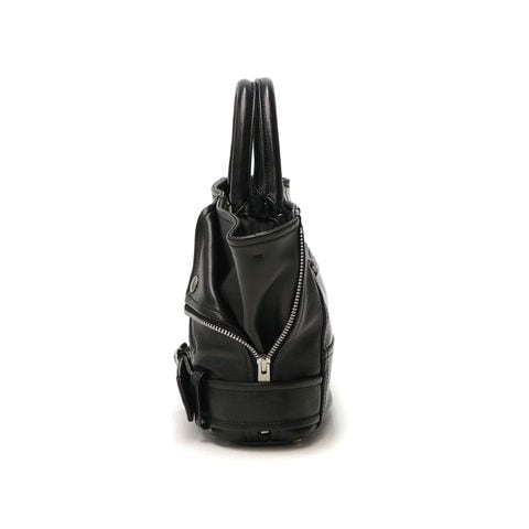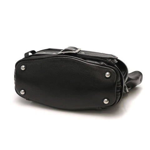 収納口はマグネット開閉で、財布やスマートフォン、手帳などいつも持ち歩きたい荷物の収納にぴったりなミニサイズ。内・外共にポケットが充実し、ライダースのディティールの特徴を生かしたあおりポケットなど使い勝手の良い設計です。また、サイドファスナーでバッグのフォルムを変えることもできます。