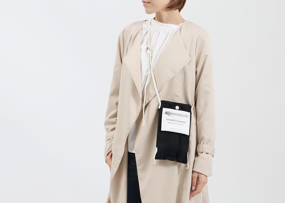 『beautiful people/ビューティフルピープル』の、裏表を逆にしたようなデザインが特徴の2WAYショルダーバッグ。裏を綺麗に仕上げるというBeautiful Peopleのパターンの特徴からインスピレーションを得たデザインです。ミニマムなサイジングながら、様々なスタイリングのアクセントになります。