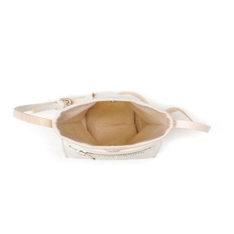 本体は、スマートフォンや折り財布といった必需品だけを持ち歩きたい時に便利なミニサイズです。また、底面のホックを留めることで底マチが作れるデザインとなっており、洗練されたスリムなシルエットと立体感のあるシルエットの2つの雰囲気をお楽しみ頂けます。