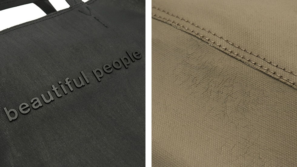 生地には1点1点手作業でクラック剤が塗り重ねられており、使用するにつれ塗料がヒビ割れ、使い手による唯一無二の風合いに仕上がります。マットな質感に仕上げられたメタルロゴも含め、女性らしくも、無骨さも秘めたデザインとなっています。