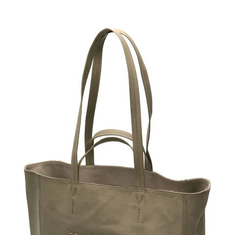手持ちに便利な短いハンドルと、厚着の季節も肩掛けしやすい長いハンドルを備えたトートバッグ。ハリのある素材はクラック加工が施されており、使うほどに変化するのが特徴で、使い手によるオリジナルの表情が楽しめます。