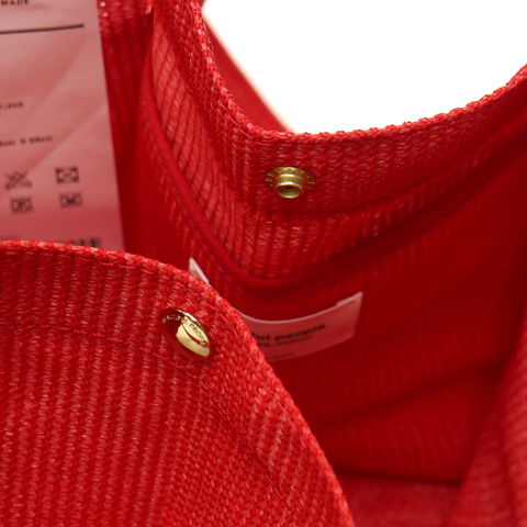 素材には、屋外日除けテントやタープ用資材などで使われる、日除けに最適で通気性のある「高密度ポリエチレン」を使用。UVカット率95%、UV耐光性、耐退色性に優れているのが特徴です。コーディネートを涼し気に演出してくれるシーズンライクな仕上がりとなっています。