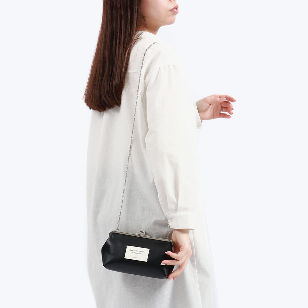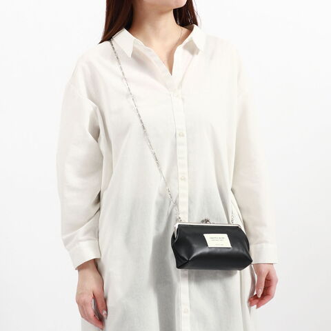 マストアイテムを持ち運べる、がま口ショルダーポーチ。こちらは、人気のデザインの横型タイプです。目を惹く型押しプリントのブランドネームと、本革を使用した上質な素材感も魅力的。 取り外し可能なチェーンストラップを外せばポーチ単体としてもご使用いただけます。スタイリングのワンポイントになる主役級アイテムです。