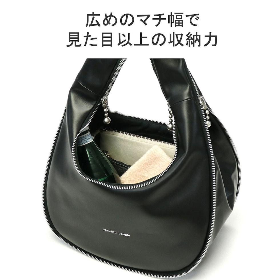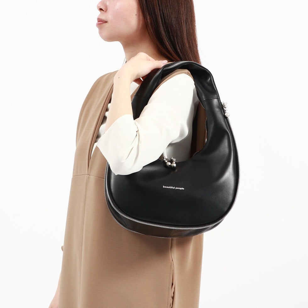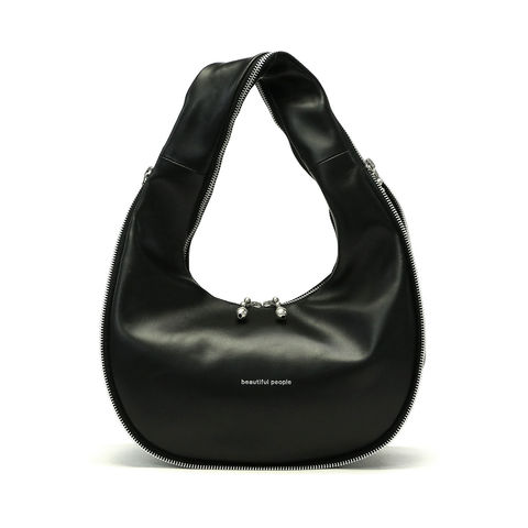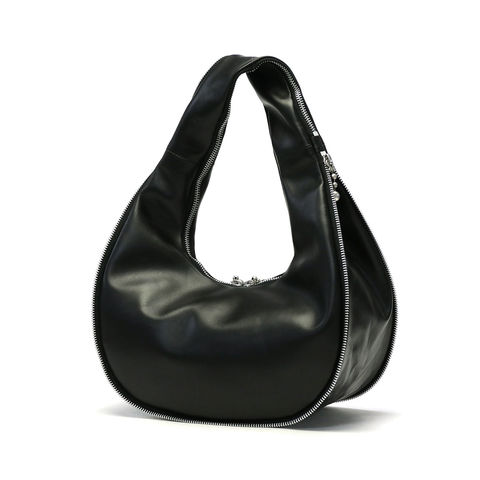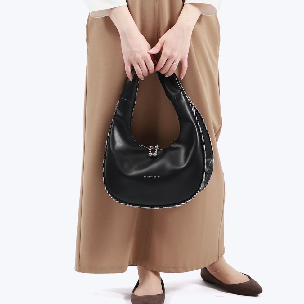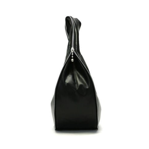 メビウスの輪からインスピレーションを得た「メビウスバッグ」がレザーで登場。こちらはスマートな印象のSサイズです。口元開閉用のファスナーをそのまま本体外側までつなげた仕様となっており、ファスナーの開閉により形状と容量が大きく変わるのが特徴。シンプルながらも一癖効かせたデザインがポイントです。