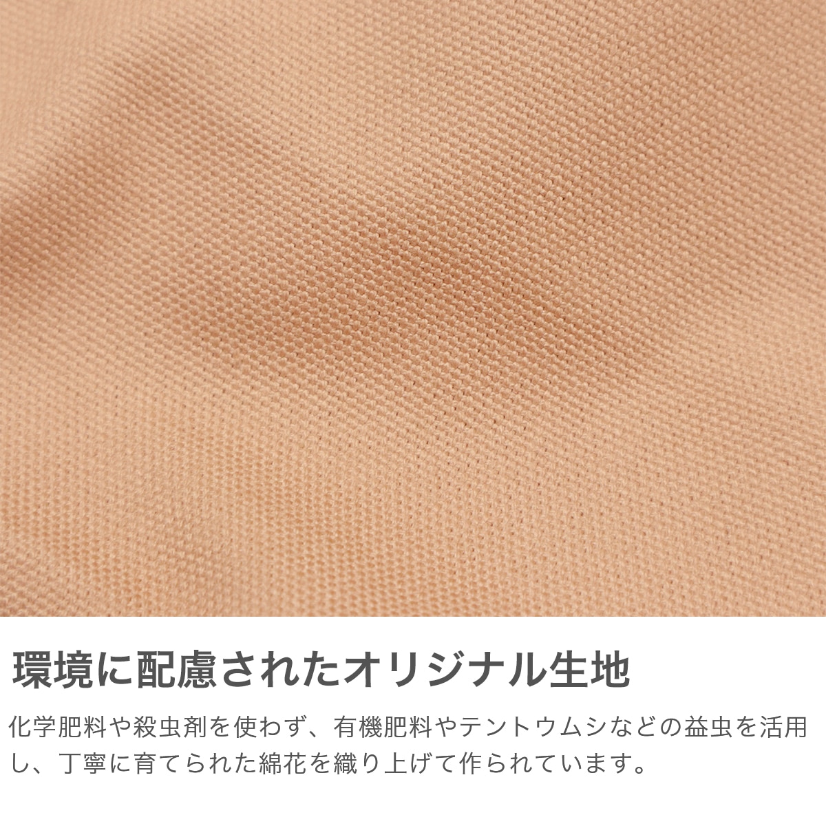 定番のネームタグトートバッグが、SDGs(持続可能な開発目標)企画として素材やサイズ感を見直しリニューアルしました。本体には、有機肥料などを活用し、手間をかけて作られた綿花を織り上げた生地を採用。環境負荷低減と安全性に配慮した「倉敷染」を施したオリジナル素材です。肩掛けしやすい長めの持ち手と使い勝手の良いサイズ感で、長くご愛用いただけます