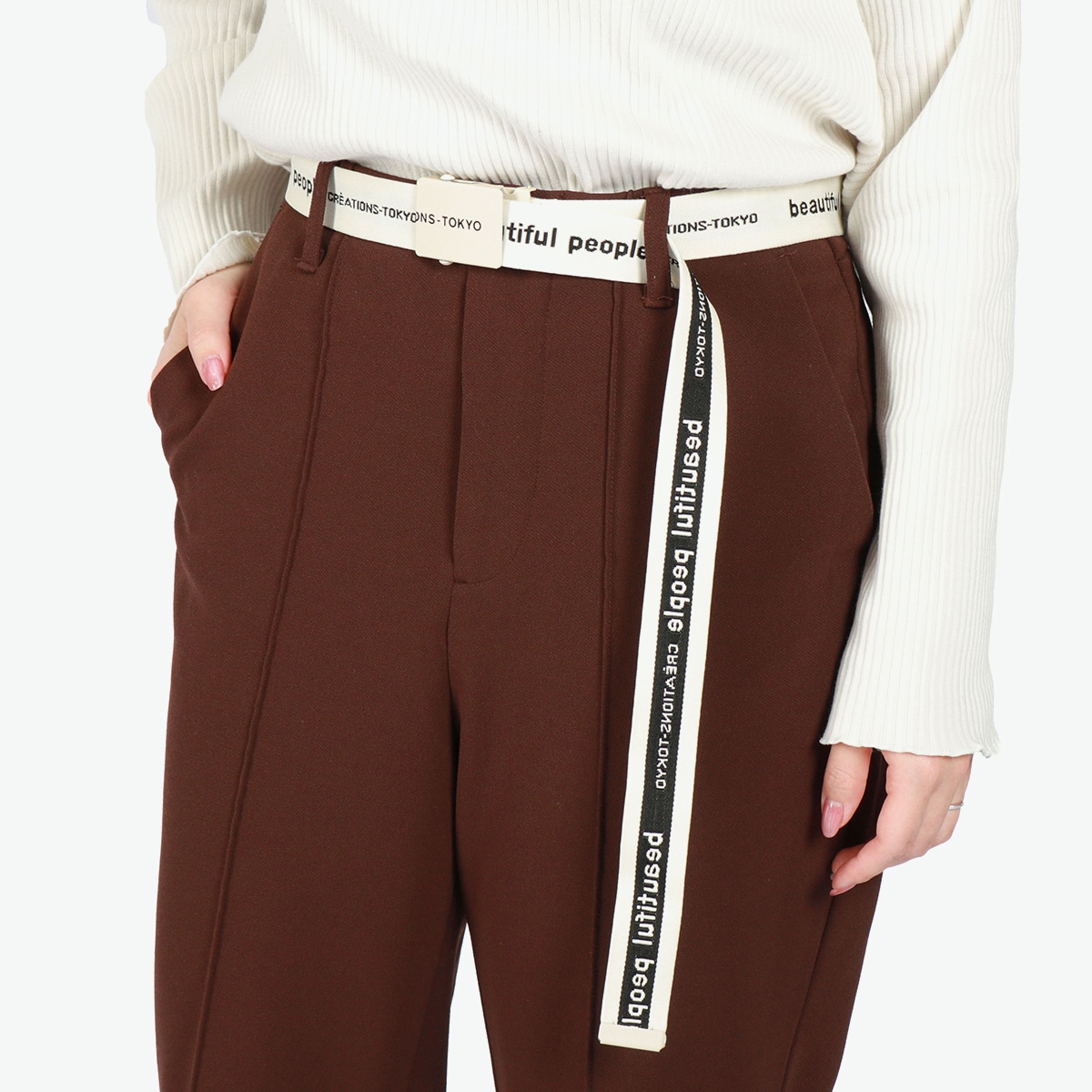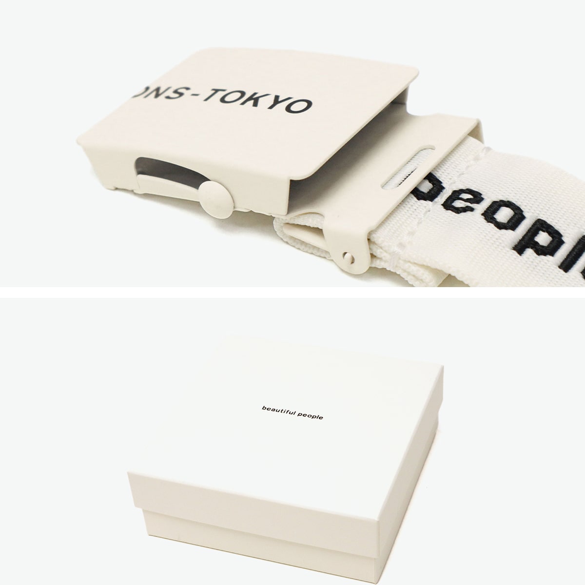 90年代の腰パンでよく使われていたガチャバックルベルトを、現代風にアップデートしたデザイン。バッグの持ち手にも使われている定番のロゴジャカードテープを採用し、バックルとテープが一体化して見えるようなトロンプルイユが特徴です。テープと同色のバックルには艶消し塗装を施し、さらに厚みのあるプリントで立体感のある仕上がりに。ウエストにメリハリを与えると同時に、スタイリングのアクセントとしても活躍するアイテムです。