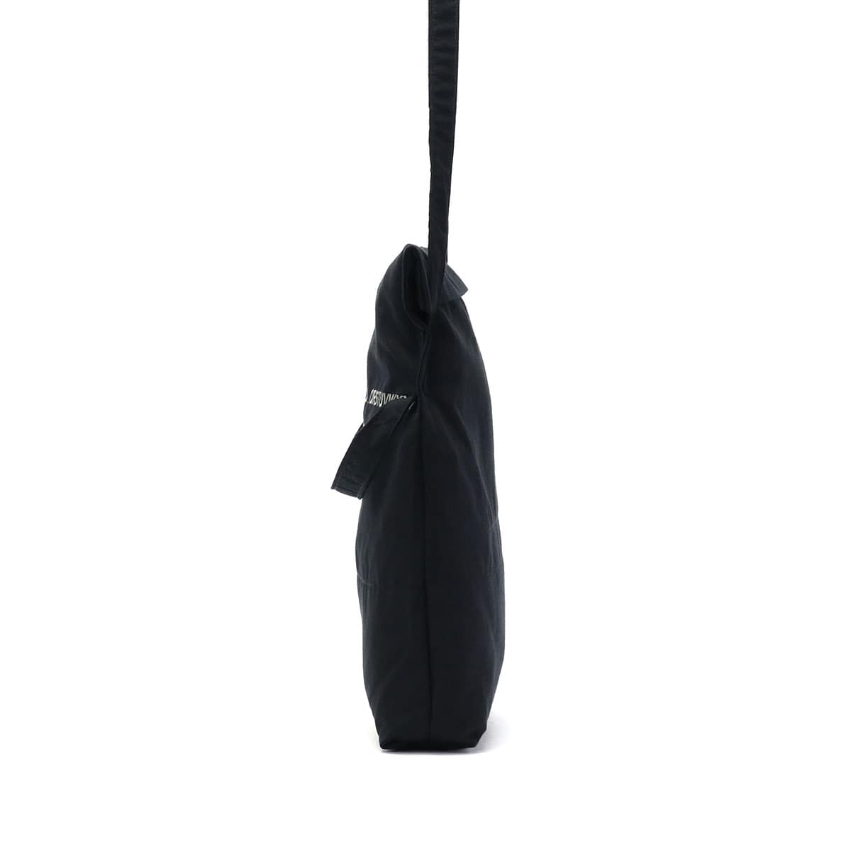 服作りのシルエット確認に使用される、軽い薄手のコットン素材のフラップ付きトートバッグ。前後で長さの違うテープが付いており、短い方は手持ち・長い方は斜めがけができる2WAY仕様となっています。アルファベット刺繍は加工後の糸処理をしておらず、滅多に見れないラフな仕上がりに。さらに、ブランド名に関連した一部の文字を意図的に省いた刺繍が施されており、細部にまでこだわりの詰まったアイテムです。