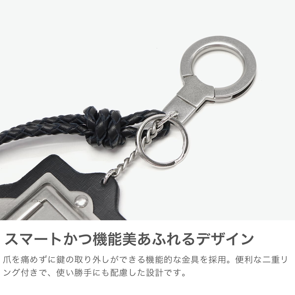 上質なスムースカウレザーに素押しロゴを添えたcabinet charm。ミニマルながら存在感があり、二重リングで鍵やバッグチャームとしても活躍。ユニセックスで使え、ギフトにも最適なキーホルダーです。