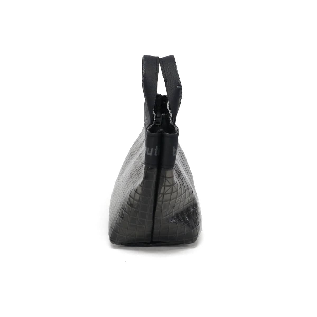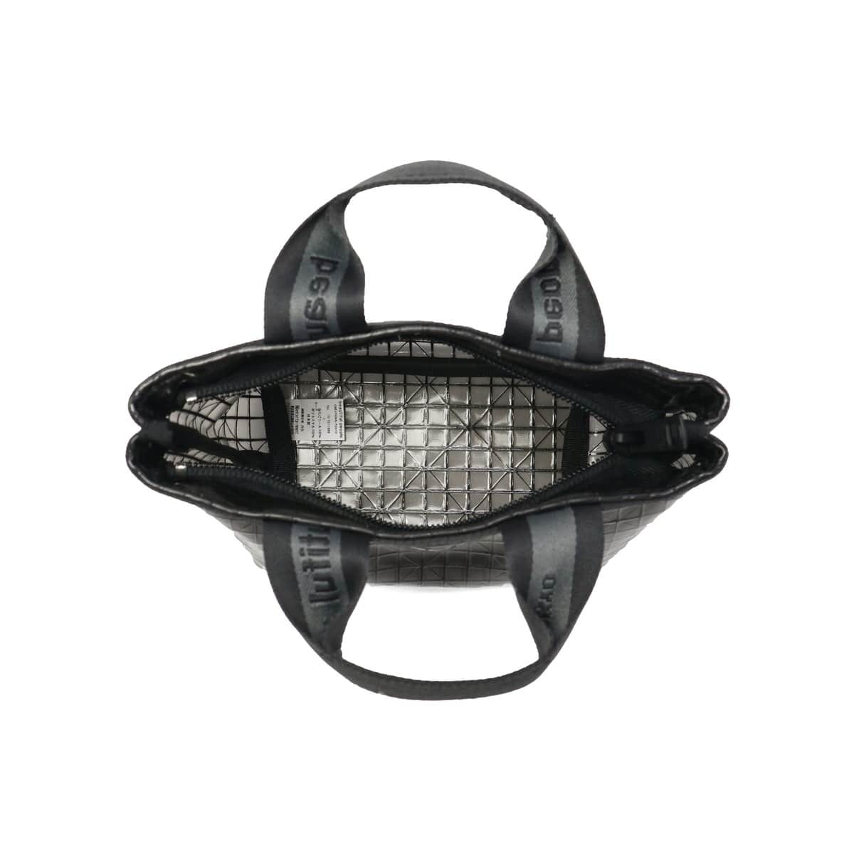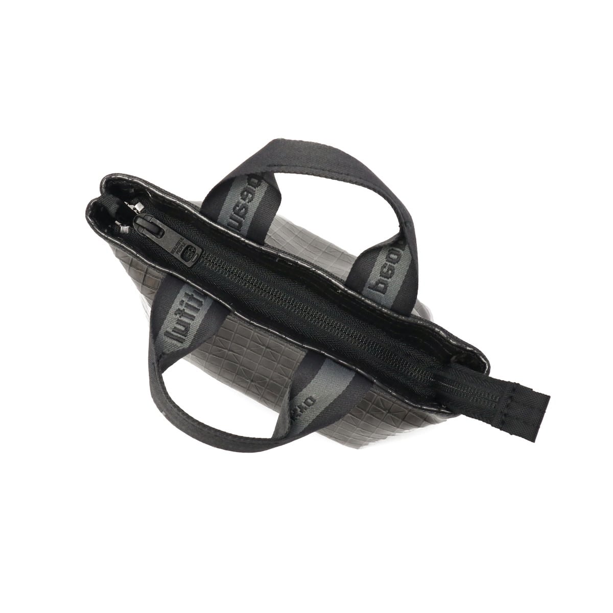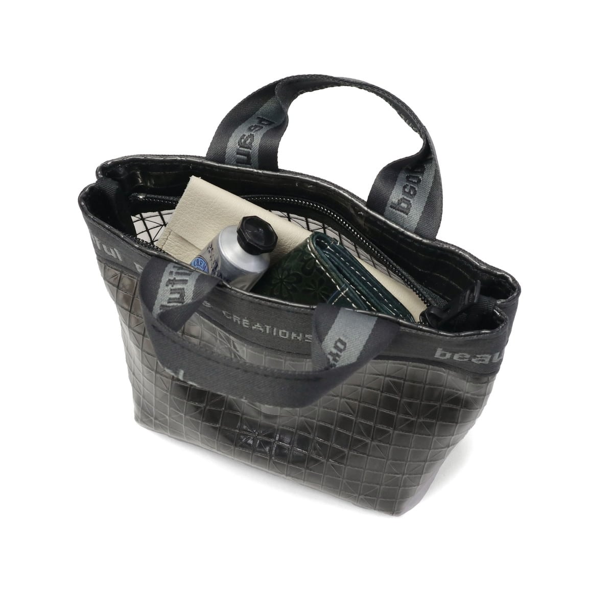 透明感のある生地が特徴の『plaid vinyl logo poach』。注目すべきは、テント素材を使った本体の質感。格子柄のビニールには表面にフッ素加工を施すことで耐光性を高め、黄変せず長く愛用できる丈夫さを生み出しています。ミニバッグ型の愛らしいフォルムに、艶やかで清涼感のあるマテリアルが際立つ、高いデザイン性を誇るアイテムです。