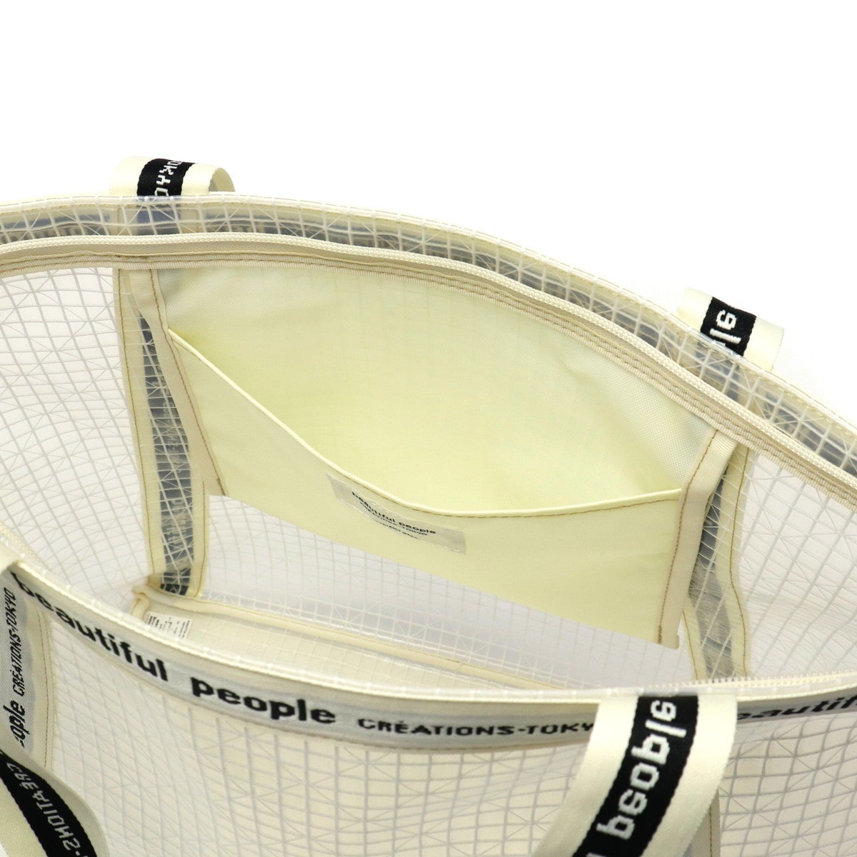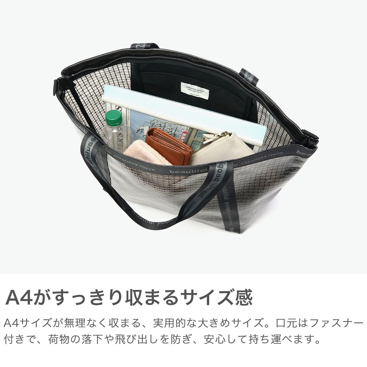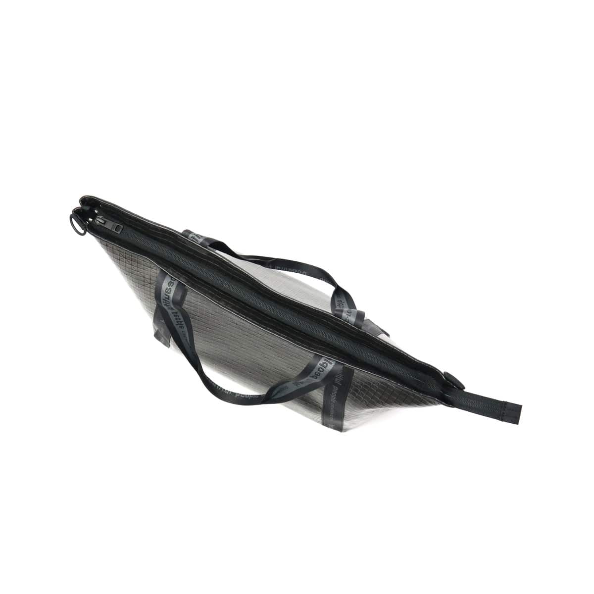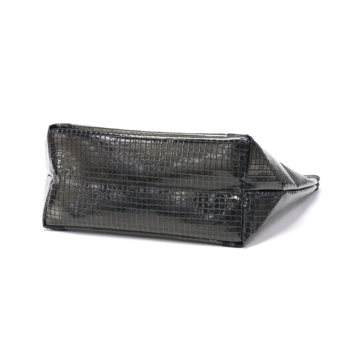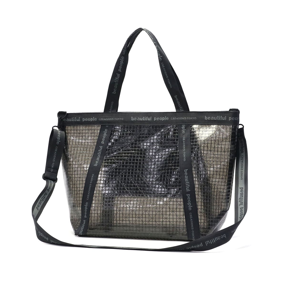 A4サイズがストレスなく入るサイズ感の2WAYトートバッグです。注目すべきは、テント素材を使った本体の質感。格子柄のビニールには表面にフッ素加工を施すことで耐光性を高め、黄変せず長く愛用できる丈夫さを生み出しています。艶やかで清涼感のある素材に、オリジナルジャガードテープを組み合わせ、存在感のあるルックスに仕上げました。