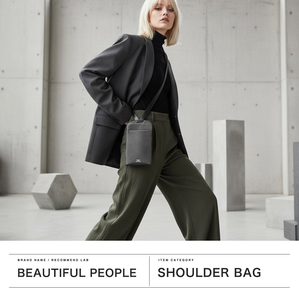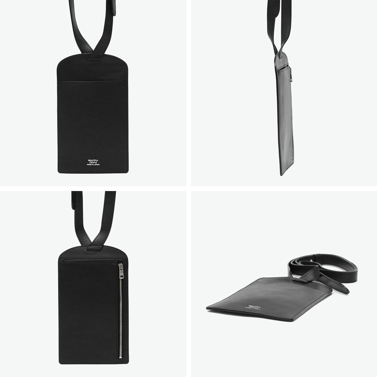 キャリーケースや旅行用バッグに付属されているバーゲージタグをイメージした、遊び心溢れるデザインがポイントのショルダーポーチ。スマートフォンやカード類を身軽に持ち運びしやすいアイテムです。個性的なフォルムとシックなカラーで、コーディネートに程よくスパイスを効かせてくれます。