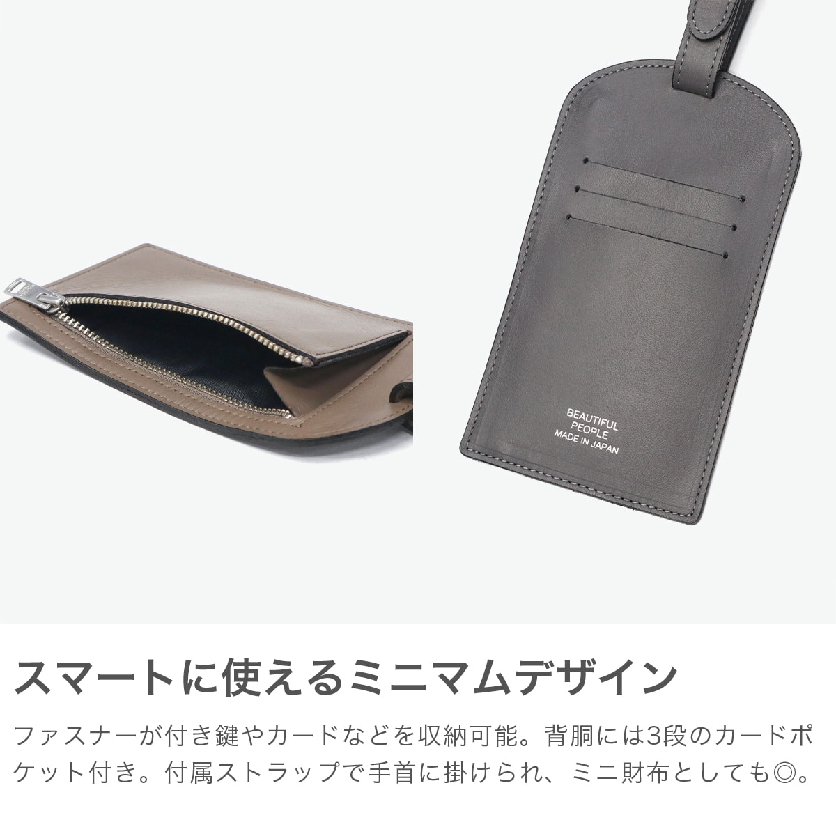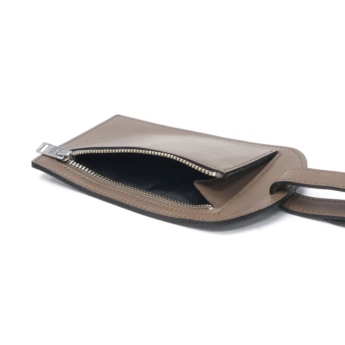 キャリーケースや旅行用バッグに付属されているバーゲージタグをイメージした、遊び心溢れるデザインがポイントのマルチポーチ。ジップ付きの収納部は小銭入れとしての使用も可能で、ミニ財布として活用できるユニークな設計。ちょっとしたお出かけに便利な、手首にかけられるストラップ付きです。